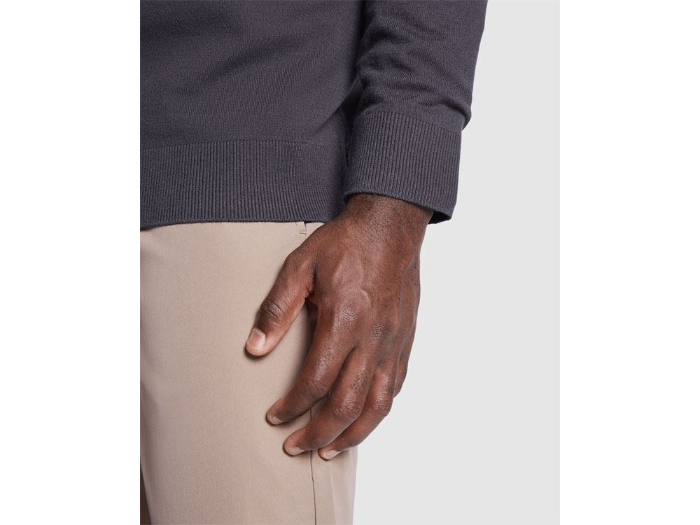 Джемпер c V вырезом тонкой вязки для мужчин. Отделка рибом 1х1 по горловине, низу и манжетам