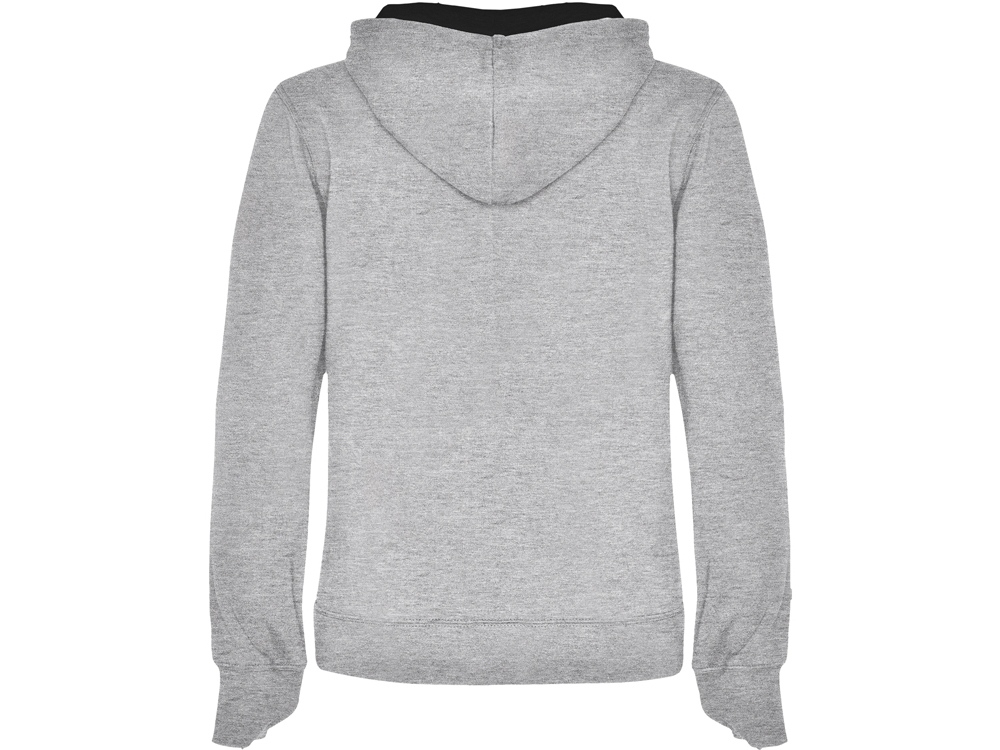 Худи с капюшоном и шнурками. Отделка горловины спинки внутри тесьмой, Риб 1х1 по низу изделия и манжетам. Карман кенгуру. На манжетах вырез под большой палец