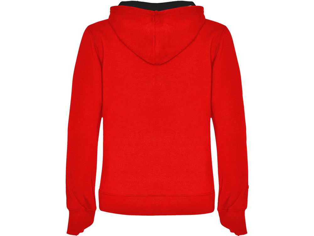 Худи с капюшоном и шнурками. Отделка горловины спинки внутри тесьмой, Риб 1х1 по низу изделия и манжетам. Карман кенгуру. На манжетах вырез под большой палец
