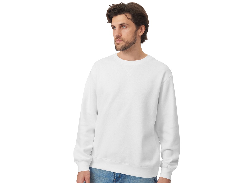 Свитшот из мягкого флиса из смеси хлопка и полиэстера. Модель комфортной и актуальной посадки оверсайз отлично подходит для обычной жизни и в качестве промо мерча.