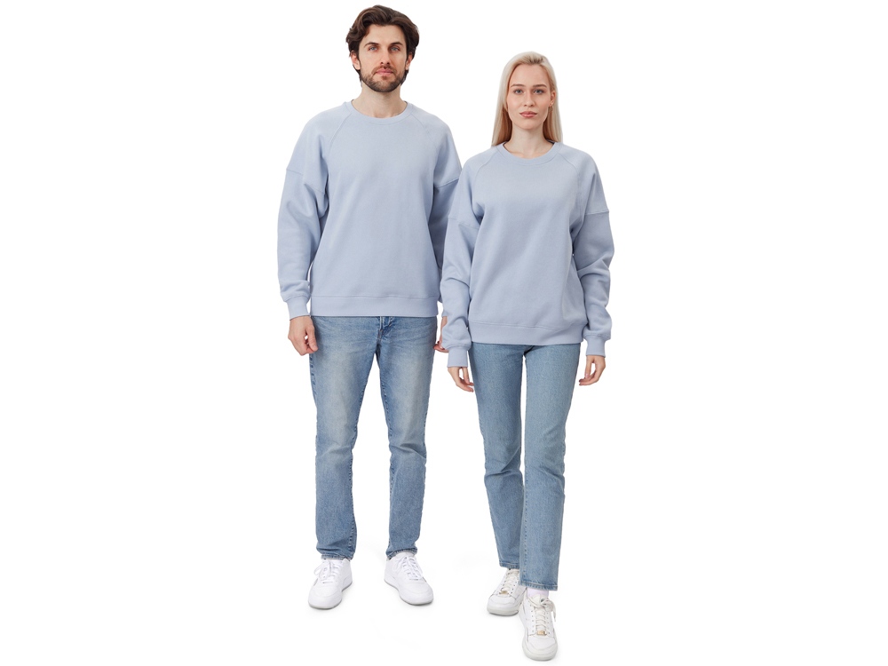 Главная особенность этого свитшота оверсайз — необычный рукав из двух частей: верхней — реглан до середины предплечья — и нижней, которая заканчивается резинкой. Благодаря такому необычному крою свитшот сидит комфортно по фигуре.