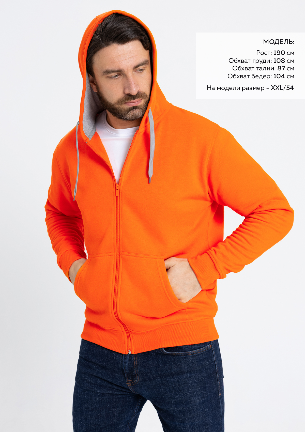 Размер мужского свитшота: XL/52. Параметры модели: рост 190 см.; обхват груди 108 см.; обхват талии 87 см.; обхват бедер 104 см.