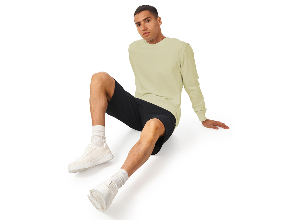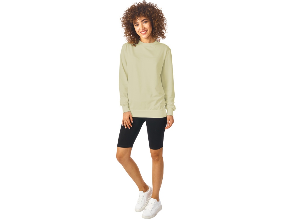 Свитшот выполнен из хлопкового 2х ниточного френч терри с петельками на изнаночной стороне. В этой модели — комфортно и удобно, это базовый предмет гардероба, который станет прекрасным мерчем, ведь компактное переплетение полотна позволяет нанести изображение идеальным образом.