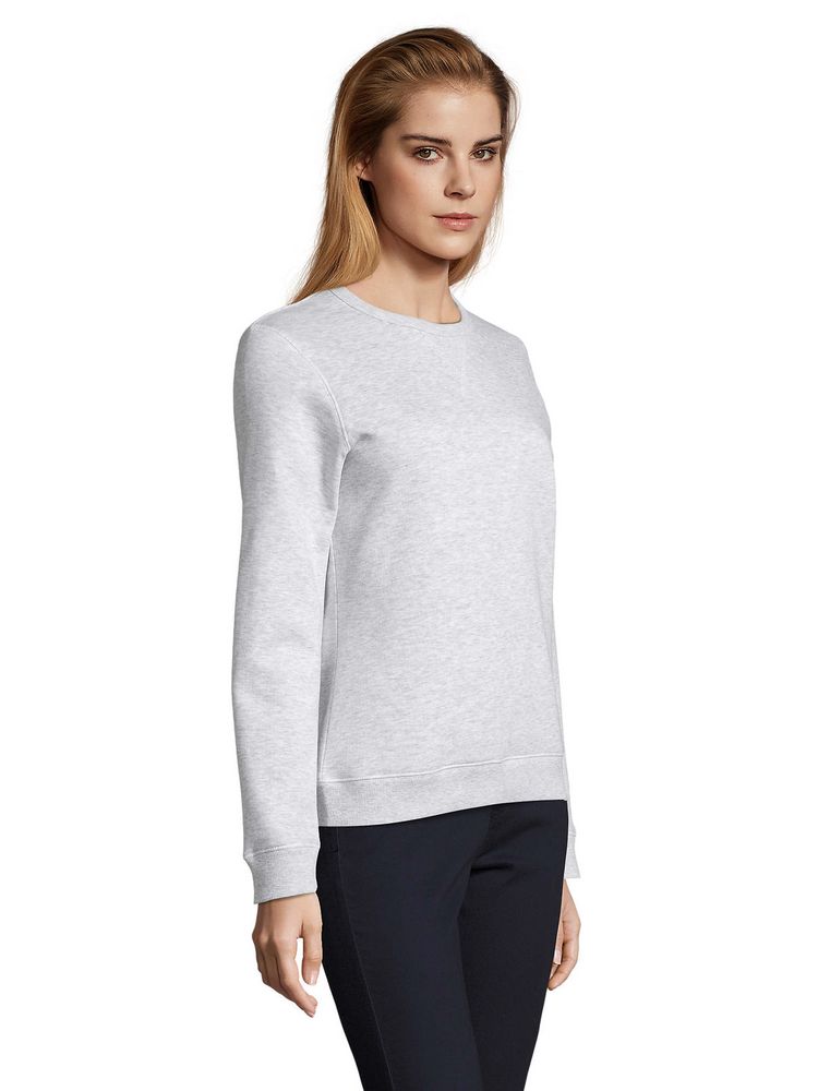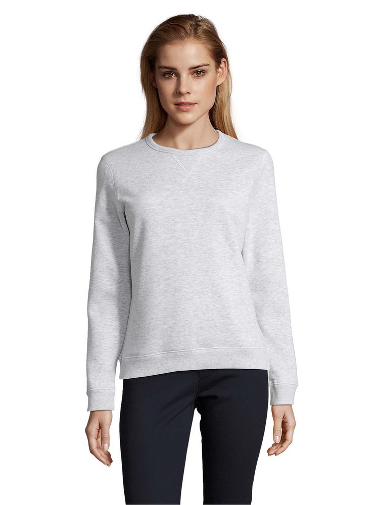 Женская утепленная толстовка с круглым вырезом и декоративной треугольной вставкой. Лейбл производителя в боковом шве изнутри, в шве горловины — только бирка с размером, что позволяет вам нанести свой логотип.- Внутренняя сторона с начесом