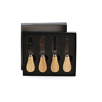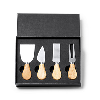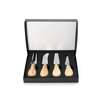 В наборы для сыра, как правило, входит несколько ножей (для масла, топорик, листовидный и т.д.), вилка и подставка. Брендируются обычно подставки и рукоятки столовых предметов.