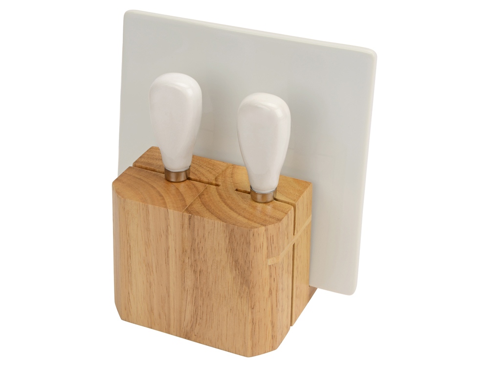Набор для сыра Cheese Break предназначен для нарезки и подачи разных сортов сыра и любых других закусок. Ножи имеют белые керамические рукоятки, а доска полностью выполнена из керамики. Предметы устанавливаются в удобную деревянную подставку, в которой их можно хранить после использования.