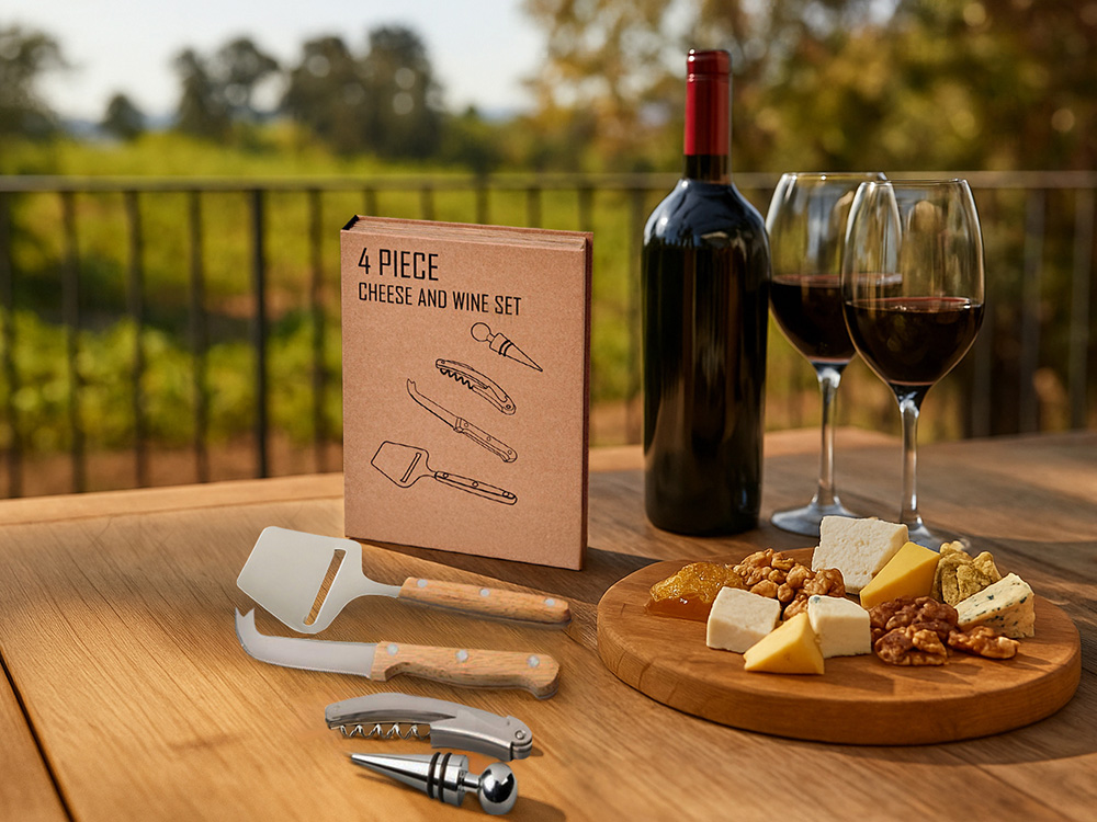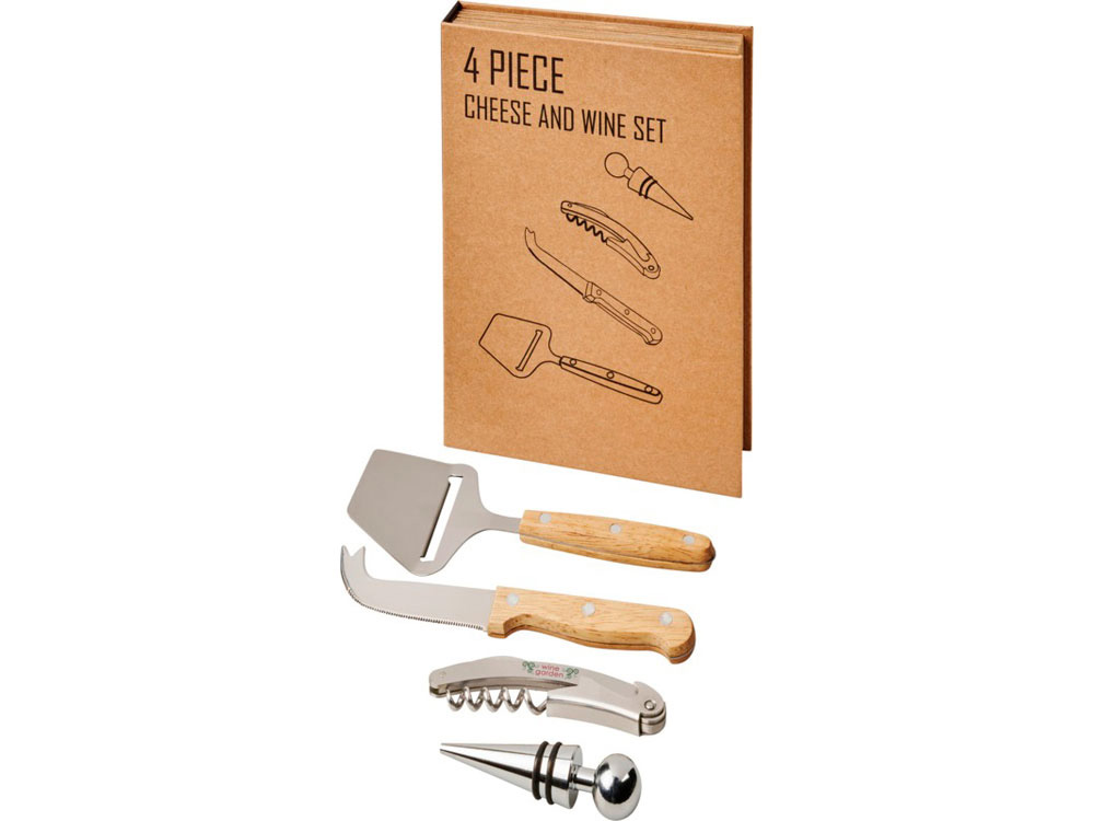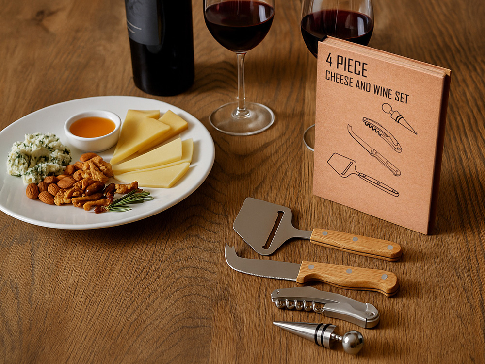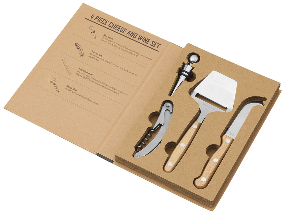 Премиальный набор для сыра и вина Reze— идеальный подарок для гурманов и ценителей изысканных вечеров. В стильной упаковке-книжке вы найдёте 4 инструмента: нож и слайсер для сыра, штопор и винную пробку. Комбинация нержавеющей стали и деревянных ручек придаёт элегантности и долговечности. Стильно, практично, со вкусом! -