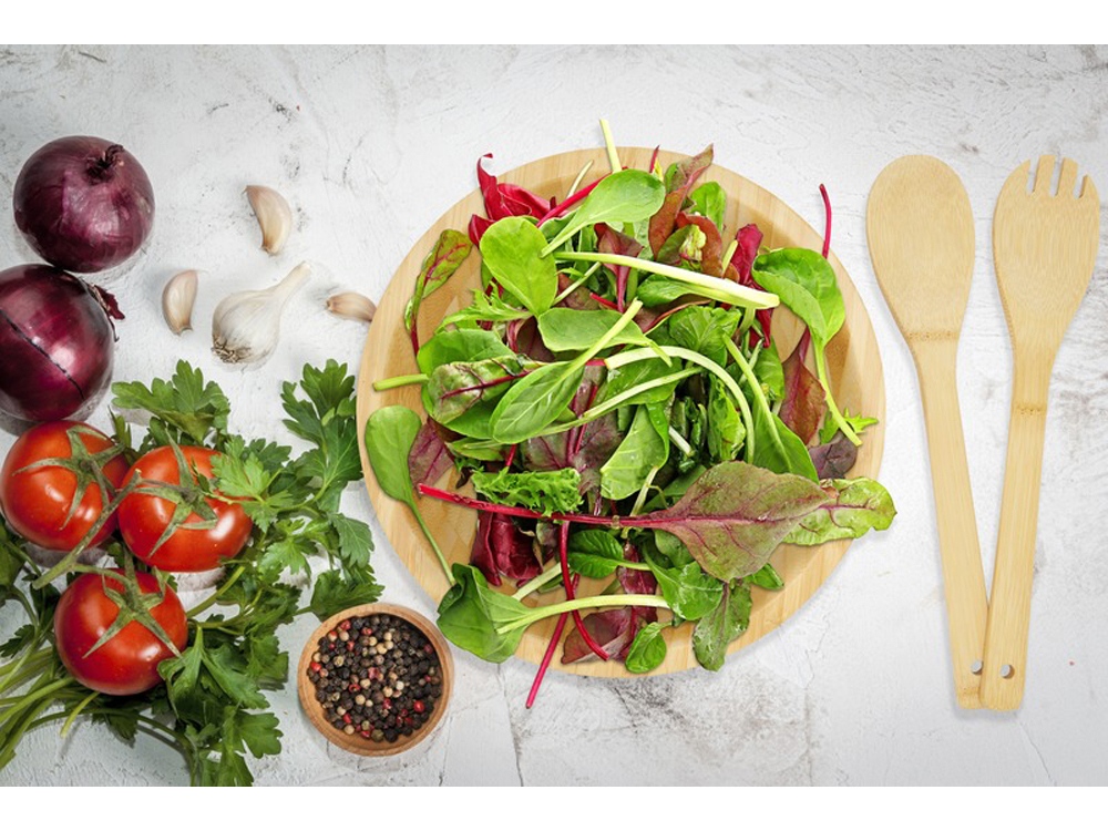 Бамбуковый салатный набор, состоящий из салатницы классической круглой формы, салатной ложки и вилки, удобных для повседневных семейных ужинов. Используемый бамбук поставляется и производится в соответствии со стандартами устойчивого развития. -