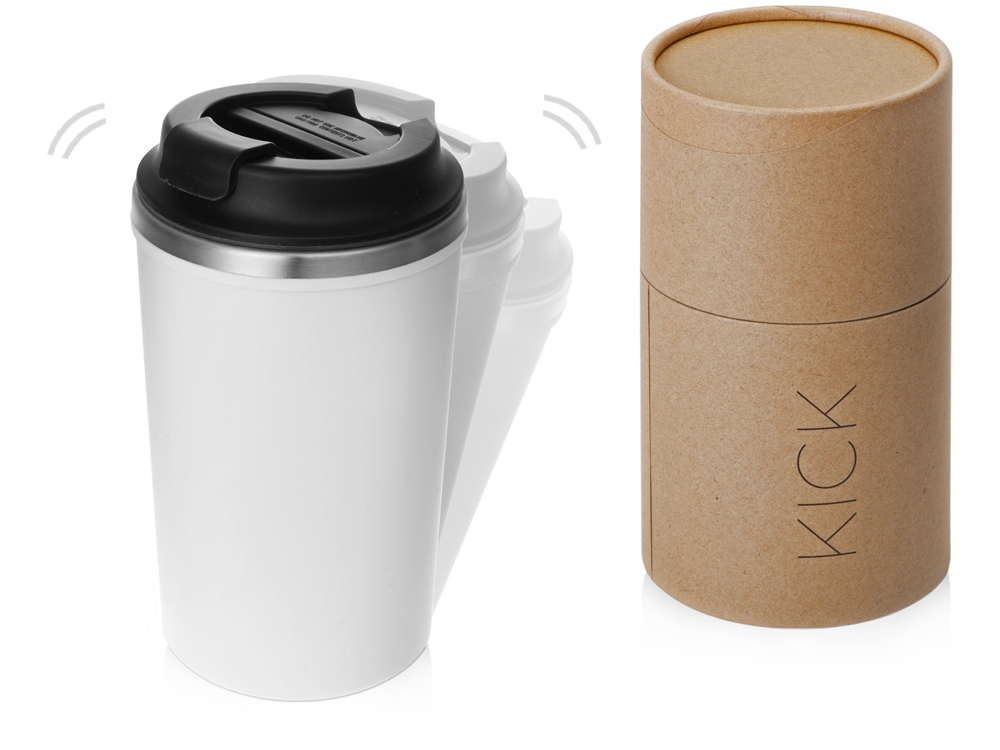 Термокружка Kick отлично подойдет для повседневного использования как на работе, так и дома. Термокружка надежно крепится к столу за счет присоски на дне, что исключает падения при случайном задевании. Чтобы воспользоваться кружкой, ее нужно поднять вертикально. Дополняет конструкцию герметичная крышка с клапаном. Внутренняя колба выполнена из пищевой нержавеющей стали 304 марки, снаружи — пластик с покрытием софт тач. Удерживает тепло около 3.5 часов.