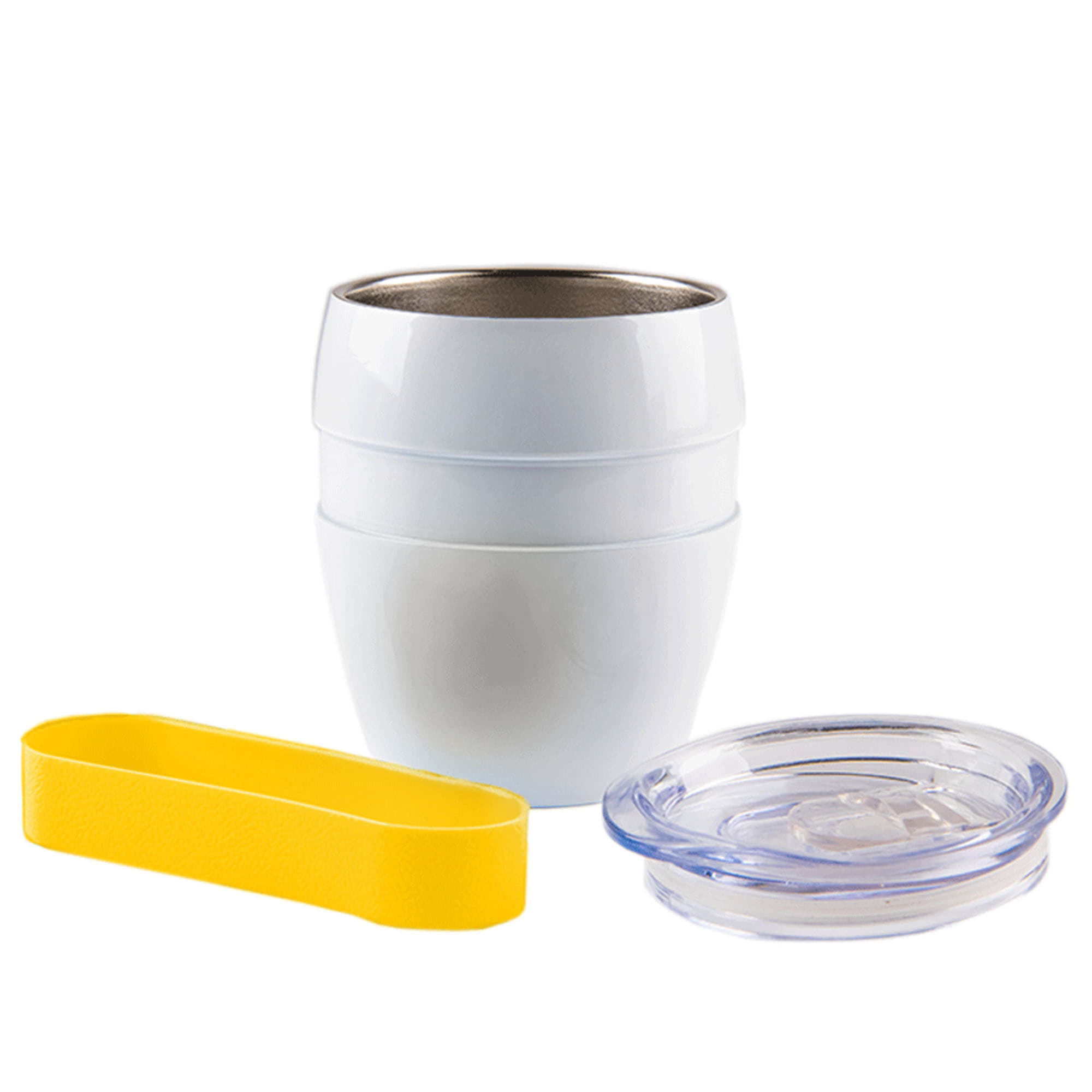 Термокружка LINE с двойными стальными стенками сохранит напиток горячим до 3х часов, холодным - до 4х часов. Благодаря форме удачно лежит в руке, и за счет резинового браслета не скользит. Высота без крышки 9,7 см, подходит для большинства кофемашин. -