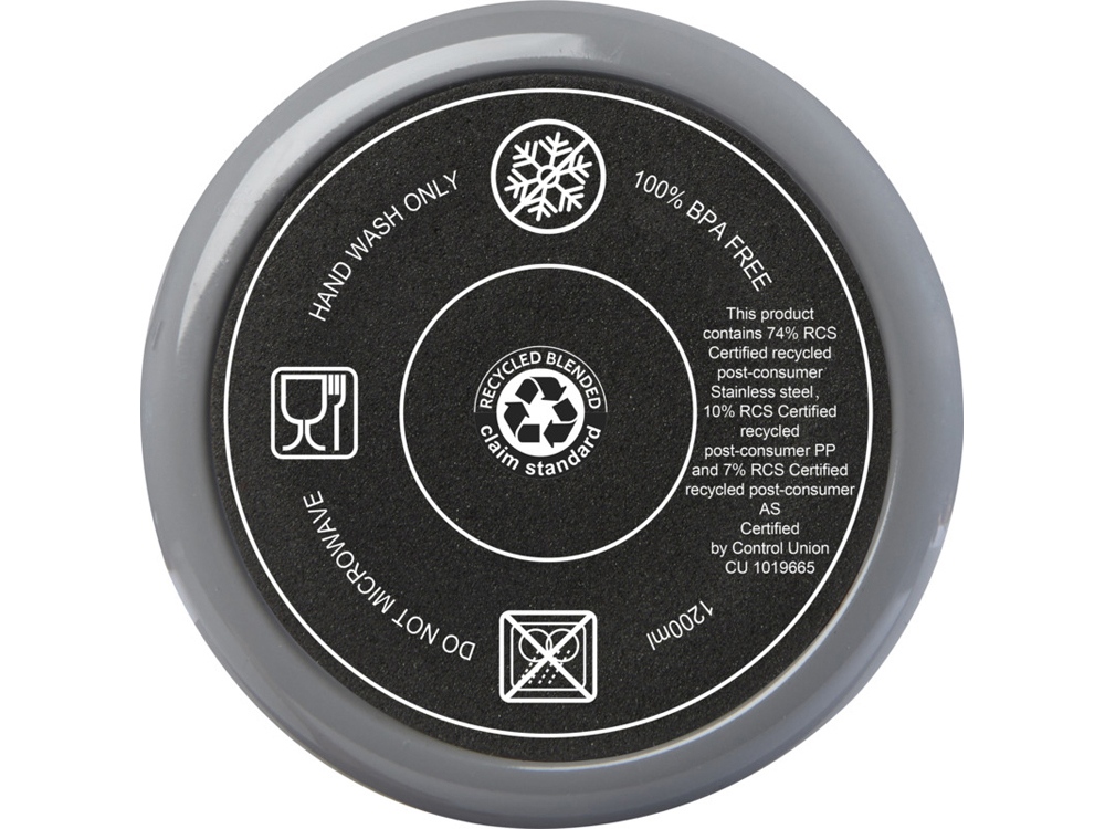 Кружка Melbourne имеет прочную конструкцию с двойными стенками, позволяющую сохранять напитки горячими или холодными в любых условиях. Внутренняя стенка кружки изготовлена из переработанного пластика, а внешняя — из переработанной нержавеющей стали, сертифицированной RCS. Кружка емкостью 1200 мл позволит вам стильно поддерживать водный баланс в течение дня. Имеет защитную крышку с двумя отверстиями и поворотным замком, который предотвращает разливание. В комплект входит соломинка из переработанных материалов для пищевых продуктов. Только ручная мойка. Recycled Plastic, 91% Recycled stainless steel.