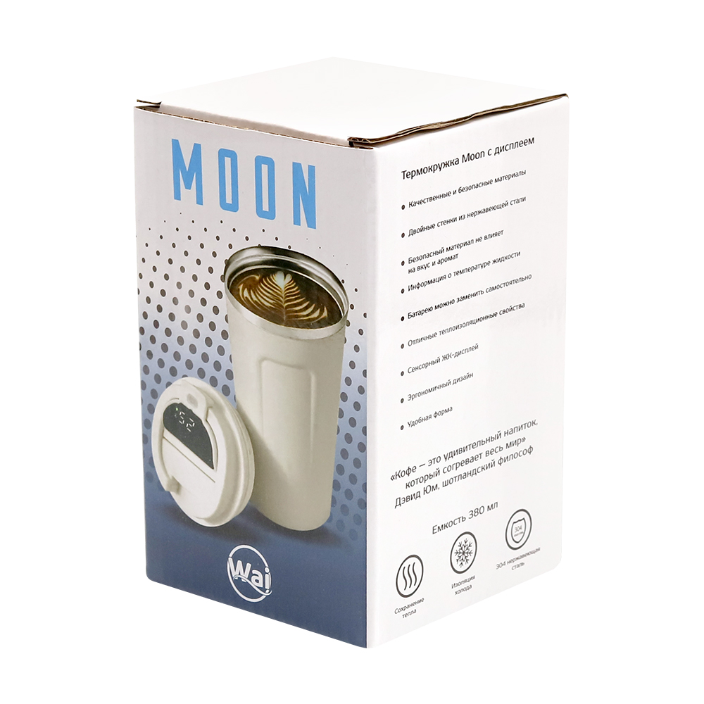 - Размер: Термокружка Moon с дисплеем, 380мл, белая