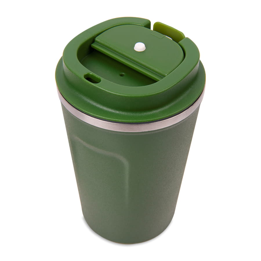 Термокружка-непроливайка с двойными стенками с откидным клапаном для питьяКолба и корпус из нержавеющей стали.Матовая микрорельефная фактура корпуса достигается благодаря особому покрытию - powder coatingЭто специальное порошковое окрашивание, более прочное и долговечное Сохраняет температуру напитков до 3-4 часов.Индивидуальная упаковка - коробка из крафтового картона -
