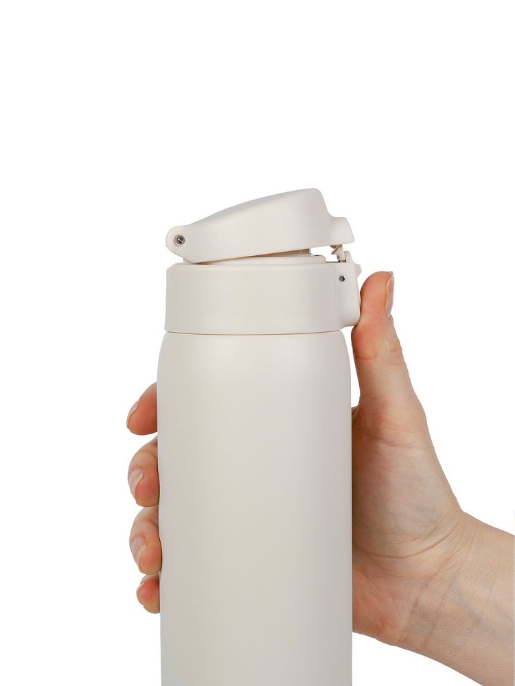 Термокружку легко открыть одной рукой — особенно удобно в машине или на улице. Дополнительный фиксатор на крышке предотвратит случайное проливание напитка.