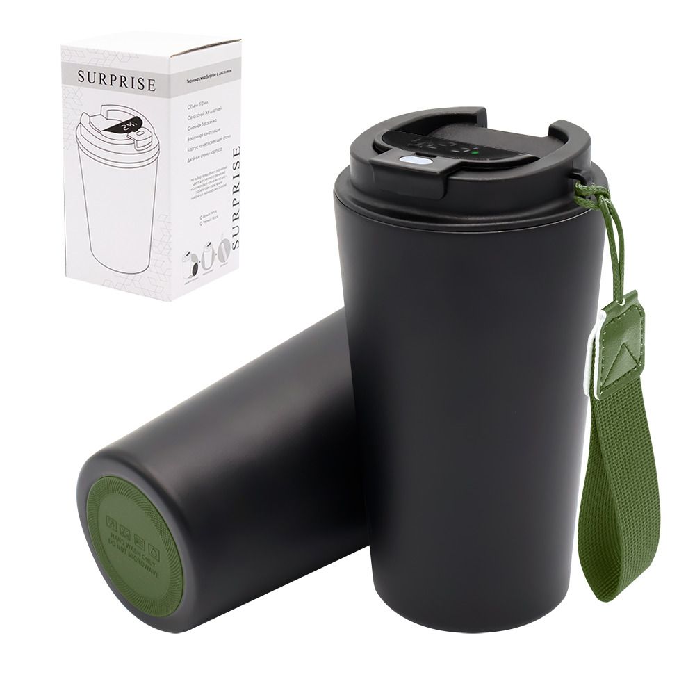 Термокружка Surprise To Go с дисплеем выполнена из пищевой нержавеющей стали. Имеет двойные стенки с вакуумной изоляцией, а крышка изготовлена из пищевого безопасного для человека пластика. Термокружка Surprise To Go не только сохраняет ваши напитки горячими, но и показывает температуру напитка! Уникальная особенность данной термокружки – наличие сенсорного индикатора температуры, расположенного в крышке. Чтобы узнать температуру напитка внутри кружки, достаточно прикоснуться к поверхности крышки. Работает от 1 батарейки типа CR2032 (в комплекте), которую в последующем можно самостоятельно заменить. - качественные и безопасные материалы - двойные стенки из нержавеющей стали - сенсорный ЖК-дисплей - информация о температуре жидкости - батарею можно заменить самостоятельно -отличные теплоизоляционные свойства - эргономичный дизайн - удобная форма В комплект уже входит силиконовая накладка и шнурок. Насладись своим кофе в компании термокружки Surprise To Go!- Виды нанесений: Гравировка-А2 (оптоволоконный лазер), Гравировка Круговая (оптоволоконный лазер), Термотрансфер DTF, УФ - DTF