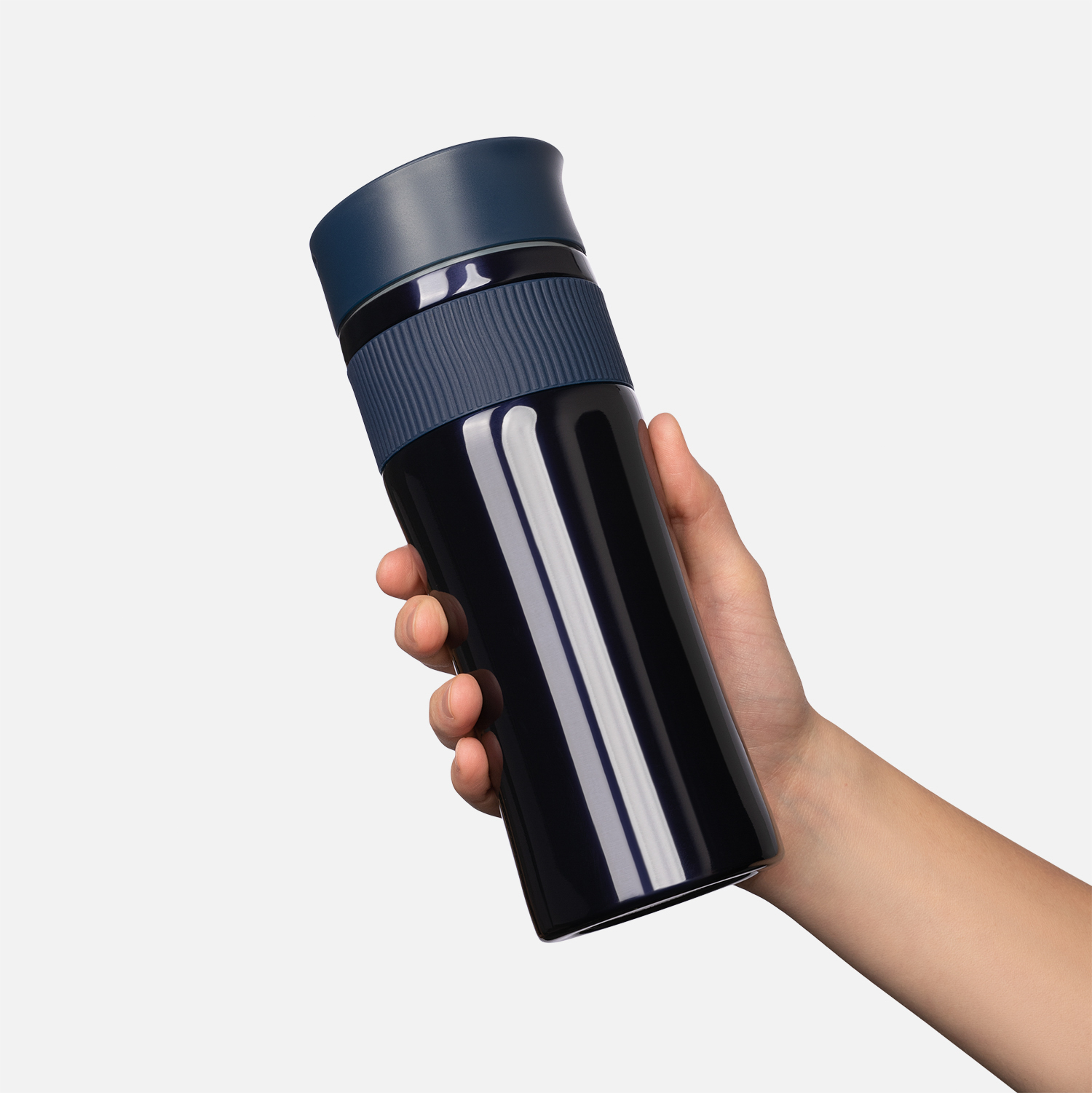 Термокружка с системой OneHand Open позволяет пользоваться кружкой одной рукой. Силиконовый манжет на корпусе не позволит кружке выскочить из руки в самый не подходящий момент.