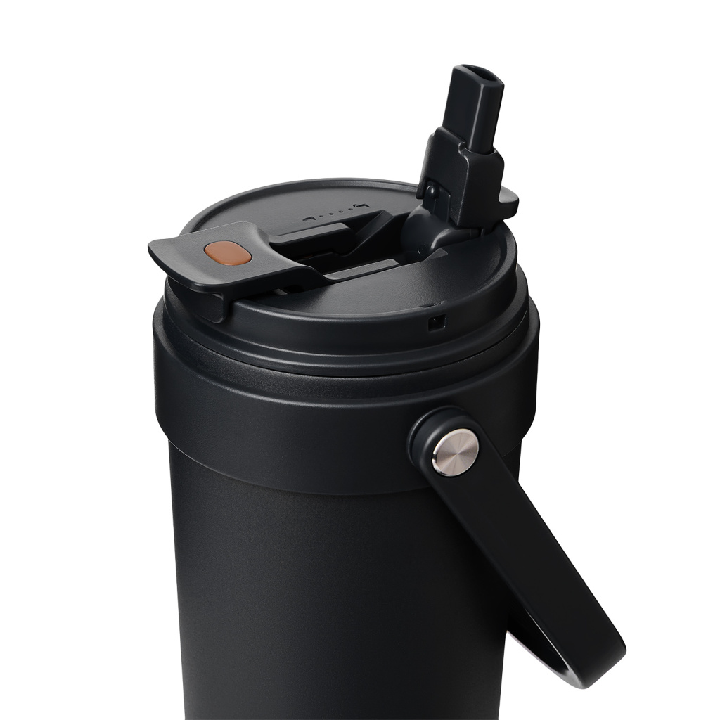 Крышка оснащена трубочкой для холодных напитков и классическим клапаном для горячих. Функциональная завинчивающаяся крышка с удобной ручкой и надежным клапаном с силиконовым уплотнителем обеспечивает безопасность в использовании.