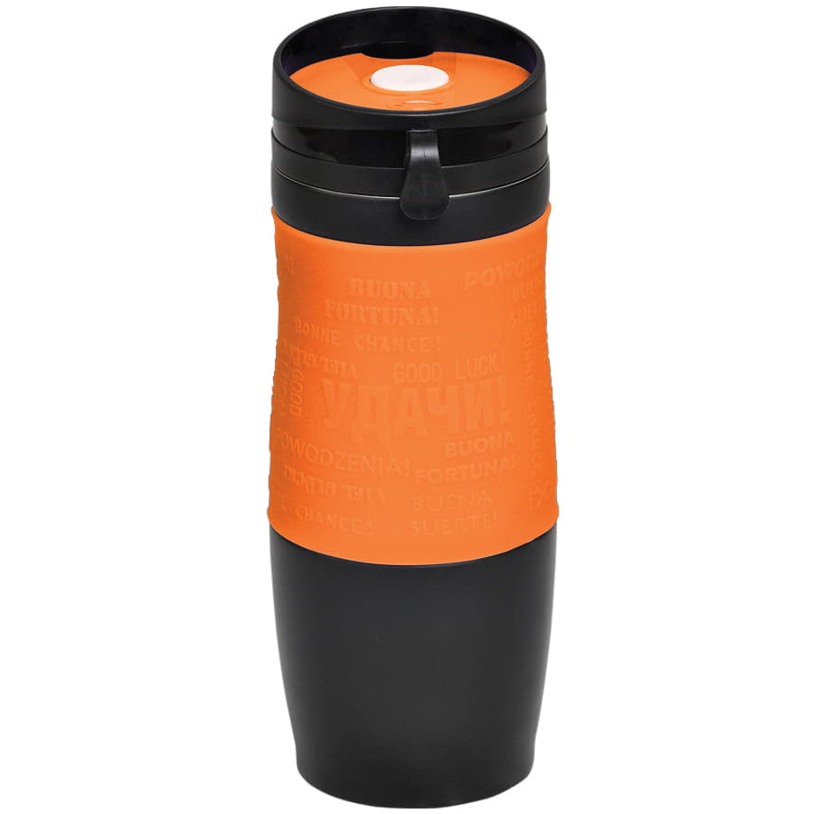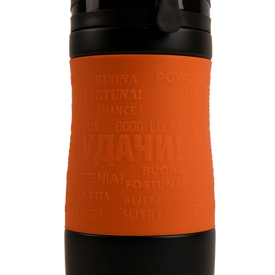 Удачи! Яркая термокружка с силиконовой манжетой. На манжете - пожелание"Удачи!" на разных языках. Pantone 165C. Термокружки сделаны из 304 нержавеющей стали. Вы сможете сохранять ваши напитки горячими до 6 часов и холодными до 12 часов. Подходит для любых напитков. Можно использовать как для горячих, так и холодных. Как для безалкогольных, так и алкогольных. Благодаря уникальному покрытию и форме, кружка не выскальзывает из рук. Стильный дизайн и яркие сочные цвета. Это не просто обычная кружка, но еще и модный аксессуар -
