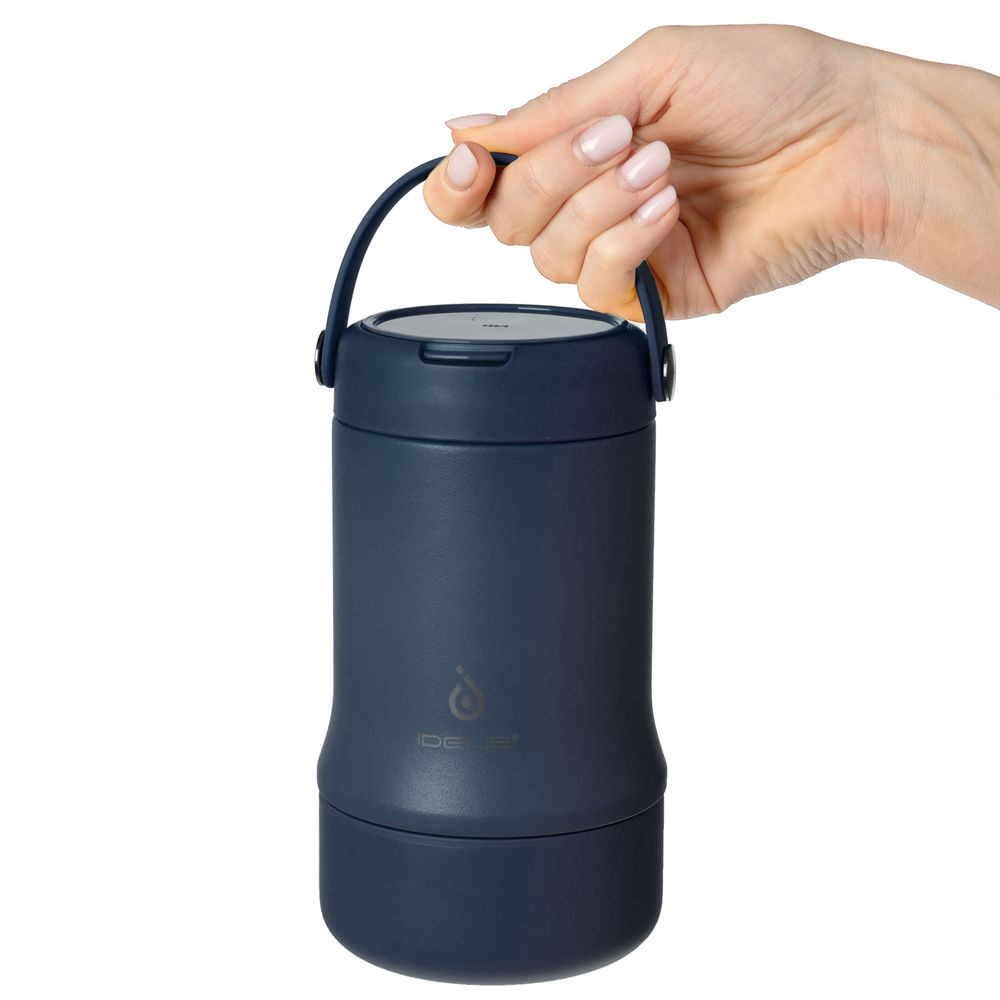 - Конструкция с двойными стенками и вакуумной изоляцией сохраняет содержимое холодным до 24 часов, горячим — до 12 часов