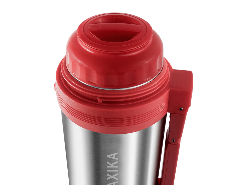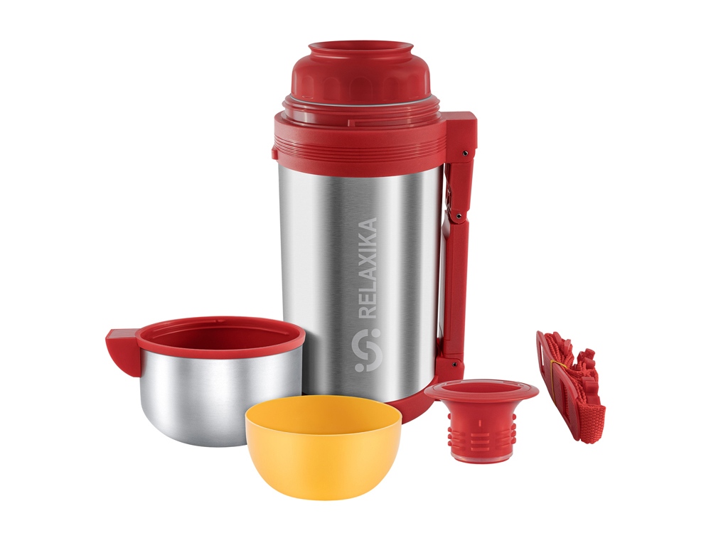 Силиконовое кольцо помогает удерживать температуру и защищает от протекания, обеспечивая 100% герметичность. Удобен в транспортировке: оснащен складной ручкой и съемным ремешком для переноски на плече. -
