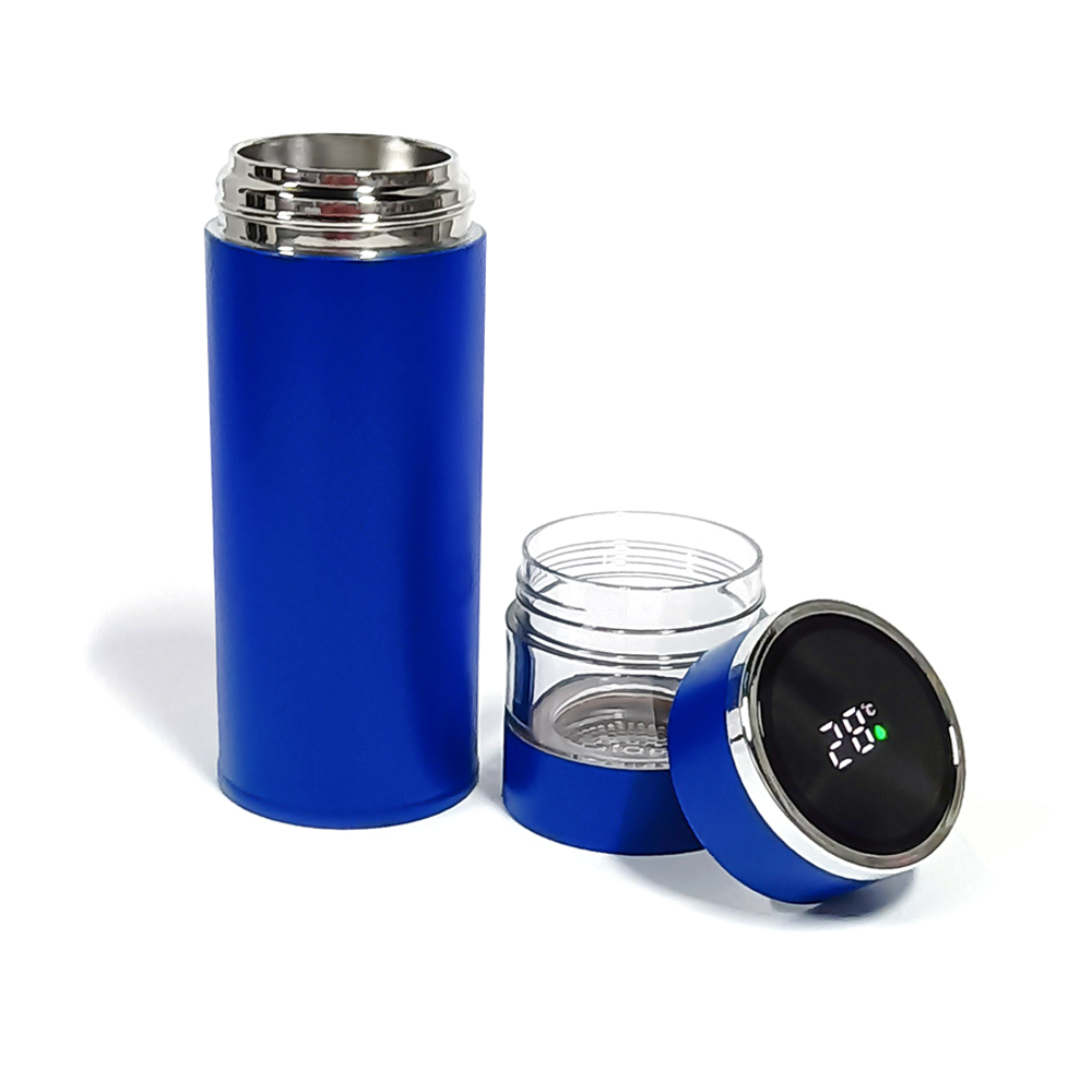 Умный термос с инфьюзером и светодиодным дисплеем не оставит равнодушным никого вокруг! Необычный дизайн, удобная форма, качественное покрытие — это все он, термос Amber! Двойные стенки из нержавеющей стали, сохраняющие ваш напиток горячим или холодным продолжительное время. Внутренняя стенка термоса изготовлена из пищевой нержавеющей стали марки 304. Инфьюзер (ситечко из нержавеющей стали) задерживает чайные листья в верхней части, не пропуская вниз. Силиконовое дно предотвращает скольжение термоса на поверхности. Дисплей показывает температуру напитка в градусах Цельсия (℃). Элемент питания в крышке несъемный, расчетное приблизительное время работы 1000 дней или 80 000 нажатий. При использовании просто слегка коснитесь светодиодного дисплея, он сразу же отобразит температуру напитка в термосе. Обратите внимание, не нажимайте на экран слишком сильно. Умный термос подходит для большинства подстаканников и легко помещается в сумку. Колба герметична и безопасна в сумке во время прогулки. 450 мл - общий объём термоса с учётом колбы для заваривания. Объём нижней колбы - 350 мл. Термос Amber - идеальный выбор для путешествий и прогулок, также идеально подходит для использования на работе, офисе или дома. - качественные и безопасные материалы - двойные стенки из нержавеющей стали - сенсорный ЖК-дисплей - информация о температуре жидкости - инфьюзер для заваривания чая - отличные теплоизоляционные свойства - эргономичный дизайн - удобная форма Цвет близкий к пантону 287С- Виды нанесений: Гравировка А2, Гравировка круговая, УФ-печать А2, Круговая УФ-печать, УФ - DTF, УФ-Лак, УФ-Цвет+Лак