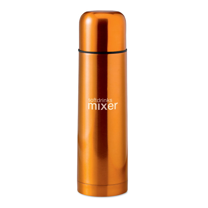 Термос из нержавеющей стали. Емкость 500 мл. Металлическая колба, прока с нажимным механизмом , крышка-чашка с пластиковой колбой. Можно мыть в посудомоечной машине. При гравировке вскрывается серебристый металл. -