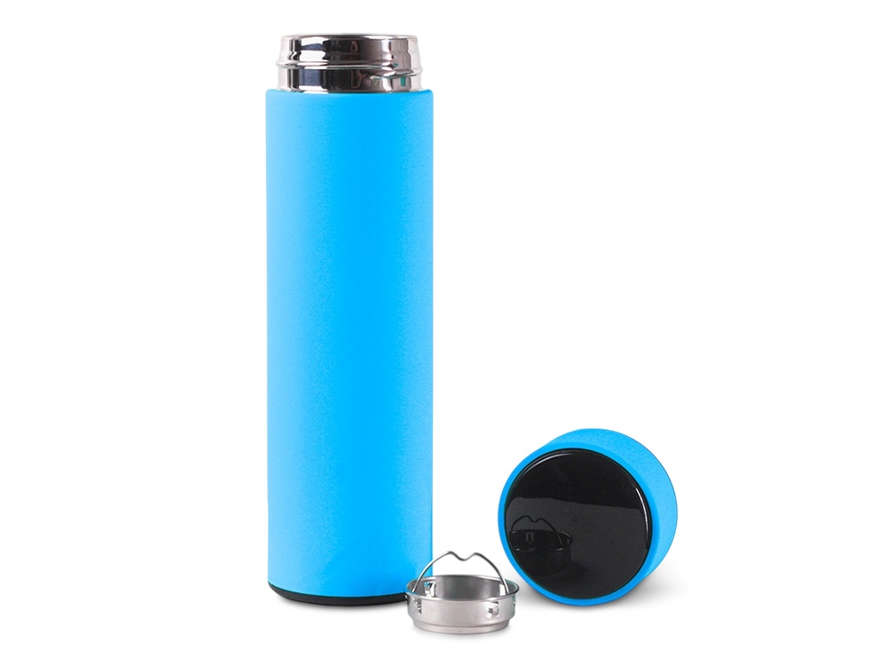Термос из нержавеющей стали, покрытый цветным soft touch, с крышкой, в которой встроен термометр и LED дисплей, показывающий температуру внутри термоса. Объем: 500 мл. Упаковка: каждый термос в крафт коробке. -