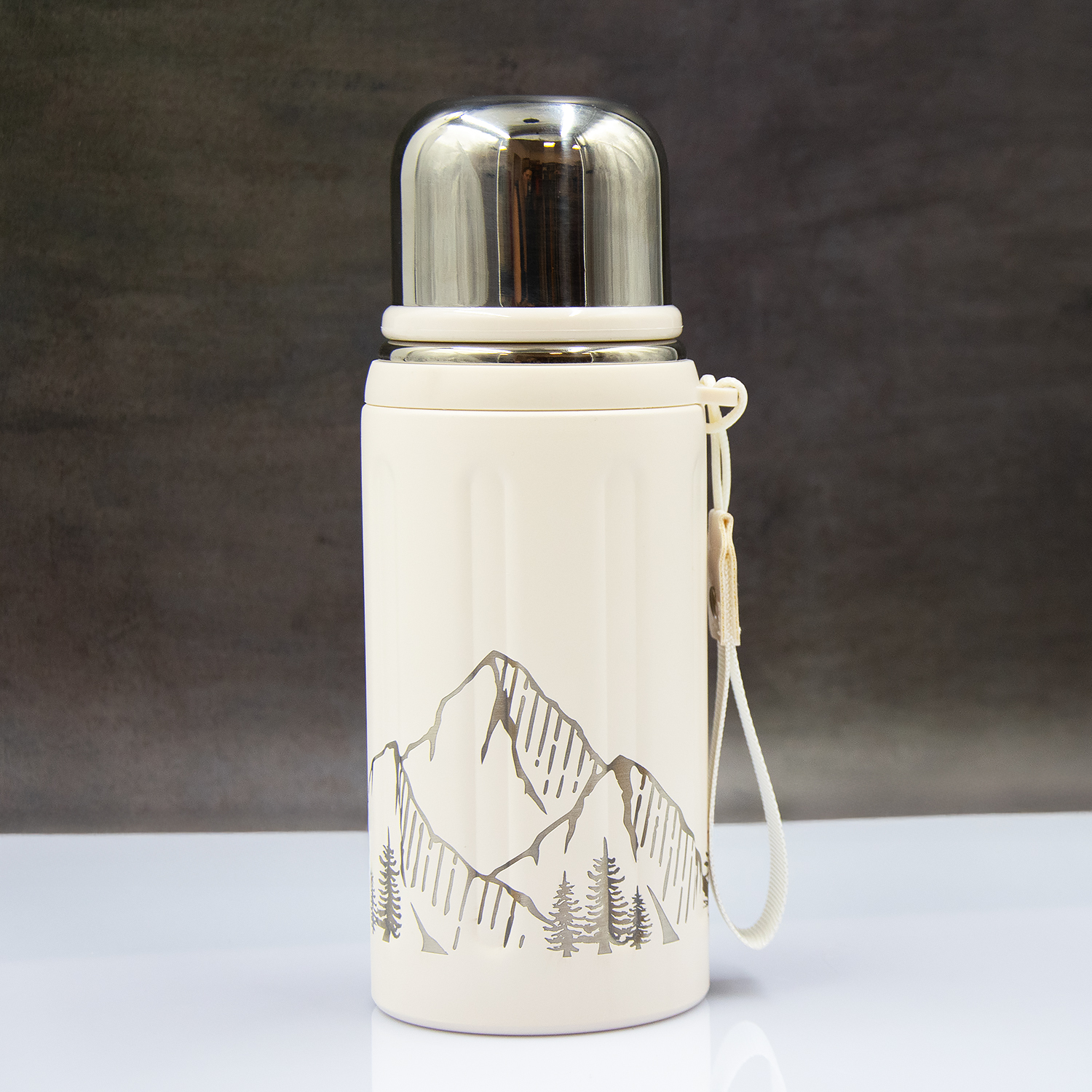 Съемный ремешок термоса сделает переноску удобной и комфортной.
