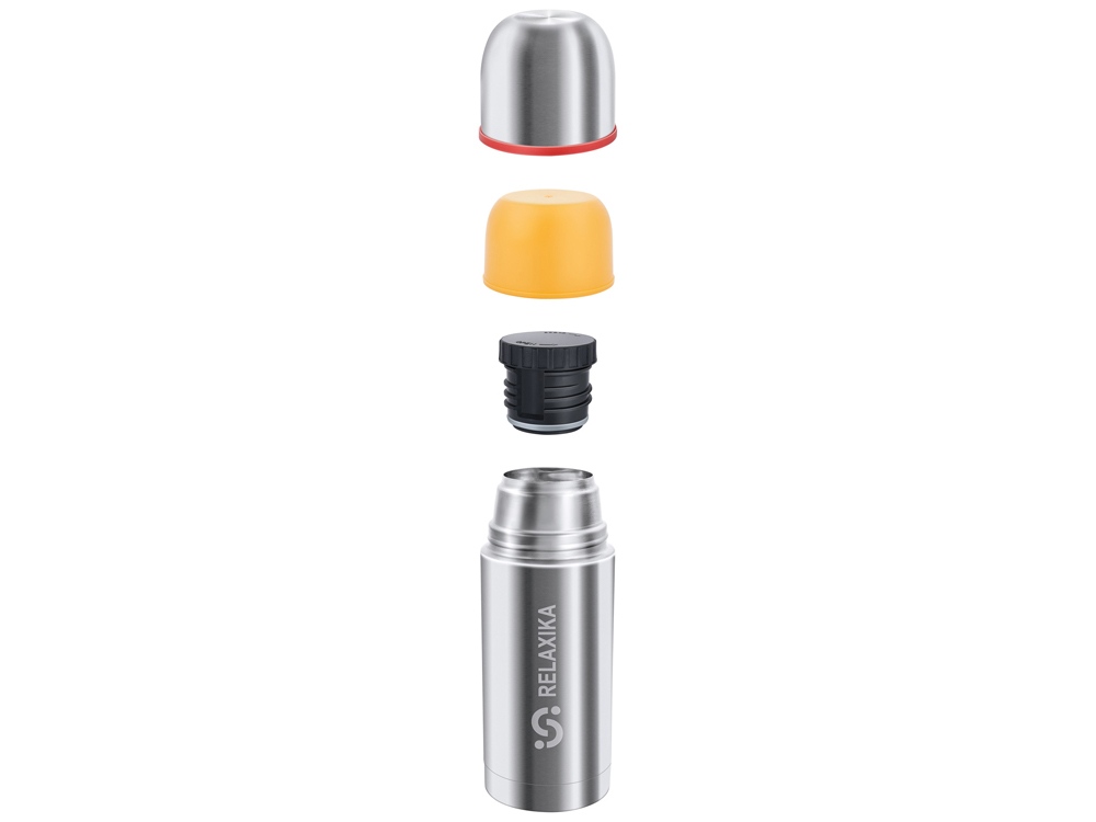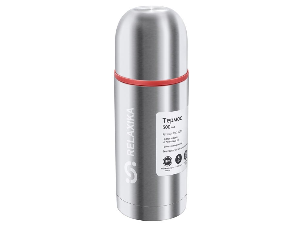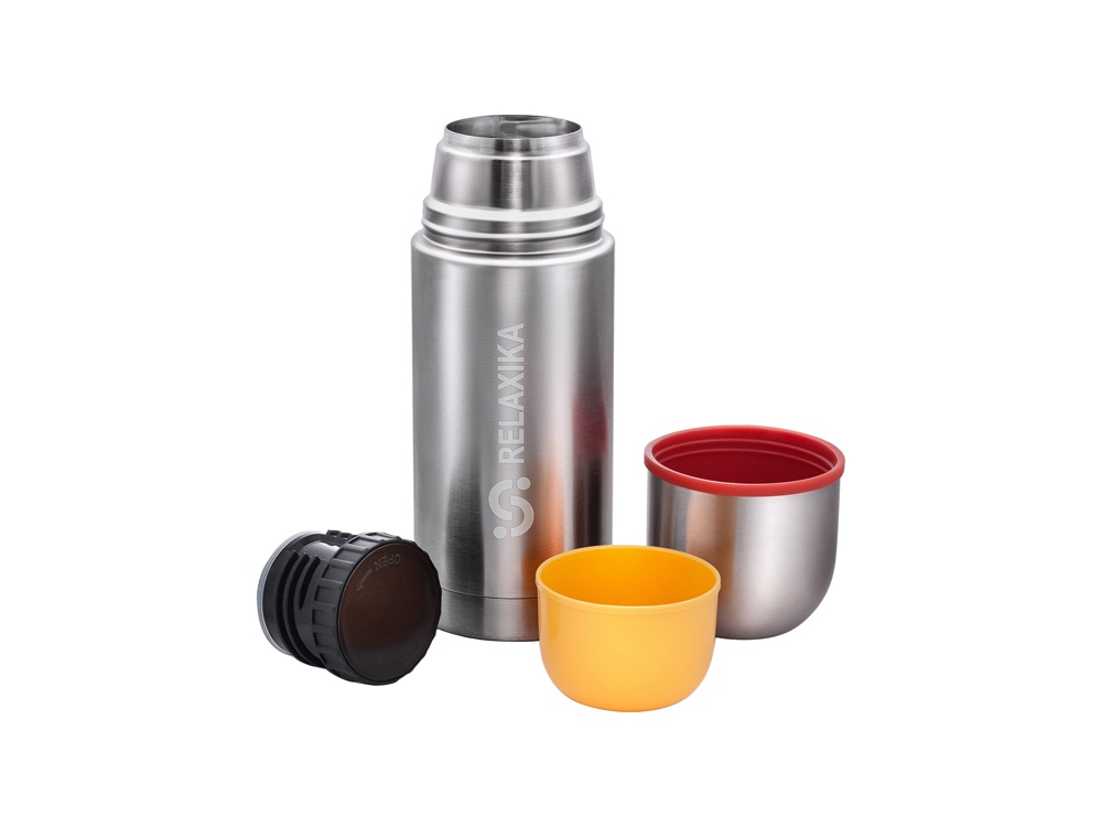 Классический термос Relaxika с двумя чашками и высокими показателями удержания температуры напитка для походов, путешествий, спорта и ежедневного использования. Прочные двойные стенки из высококачественной нержавеющей стали 18/8 с вакуумной изоляцией гарантируют, что ваш напиток останется холодным в течение 34 часов и горячим до 28 часов. Этот материал не только прочен, но и гигиеничен, не выделяет никаких вредных для здоровья веществ. Ваши напитки сохраняет естественный вкус и не приобретут посторонний запах.