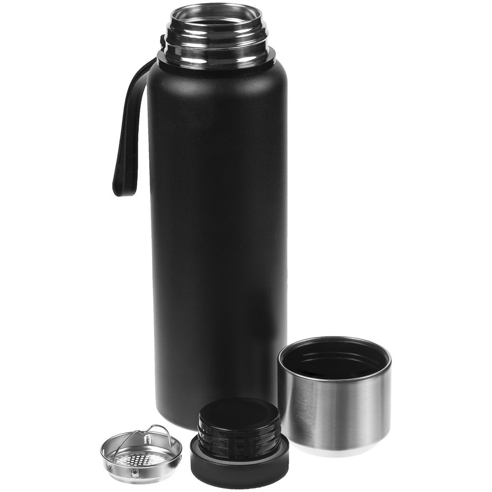 Термос в строгом металлическом корпусе с вакуумной изоляцией. Завинчивающаяся пробка, крышка-чашка и ситечко для фильтрации — удобно заваривать чай или кофе. Напиток останется горячим, а чаинки не попадут в чашку.Емкость 1000 мл.