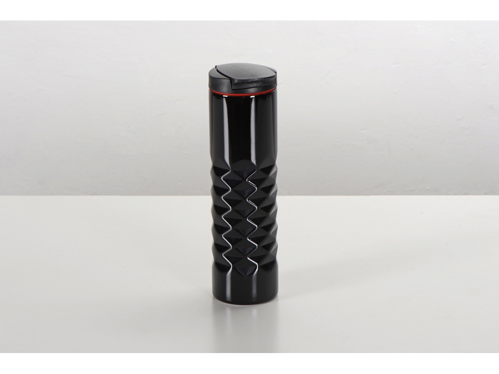 Термос с двойными стенками из нержавеющей стали с вакуумной изоляцией, откидной крышкой и привлекательным дизайном с геометрическими фигурами. Объем – 475 мл. -