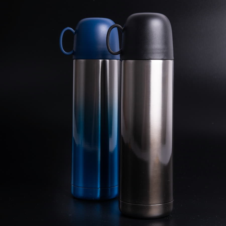 Вакуумный термос Gradient с двойными стальными стенками. Очень удобная форма крышки-чашки. Отделка - плавный градиент из серебряного в угольно-черный цвет. Сохраняет тепло до 12 часов в зависимости от температуры окружающей среды. -