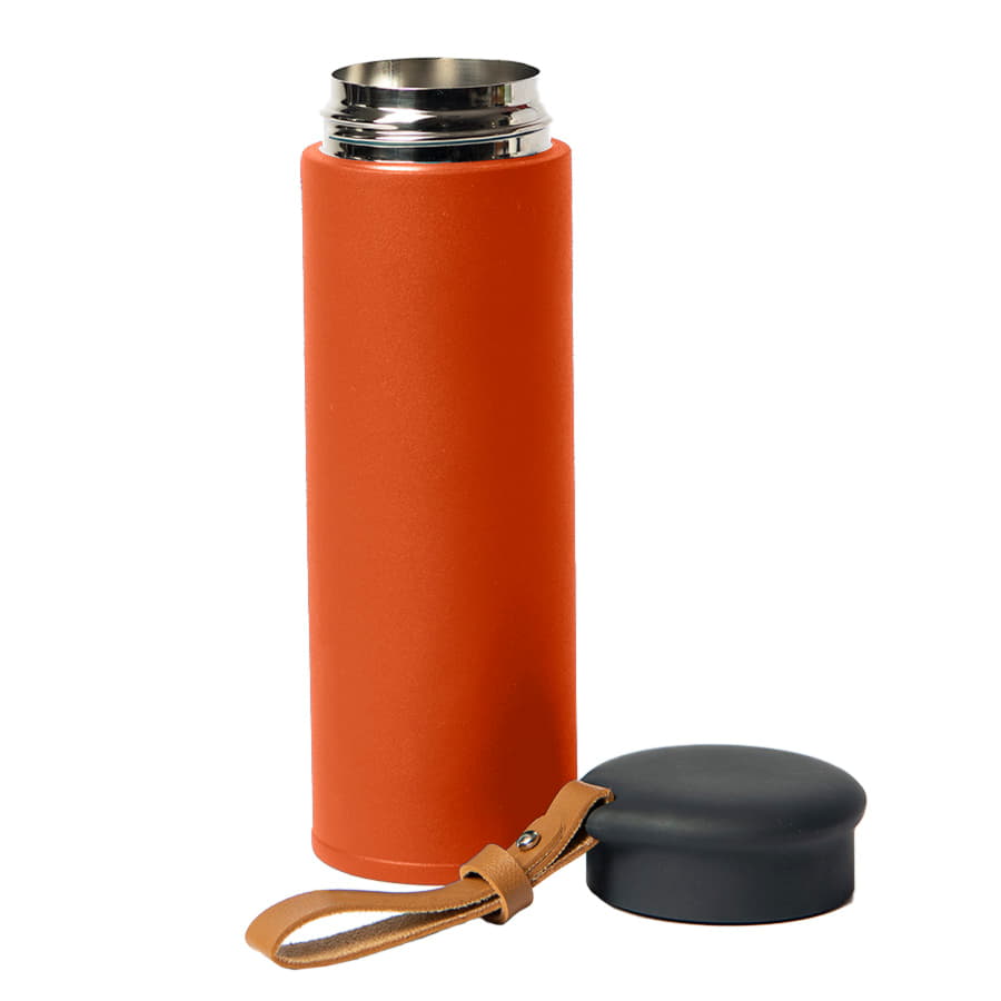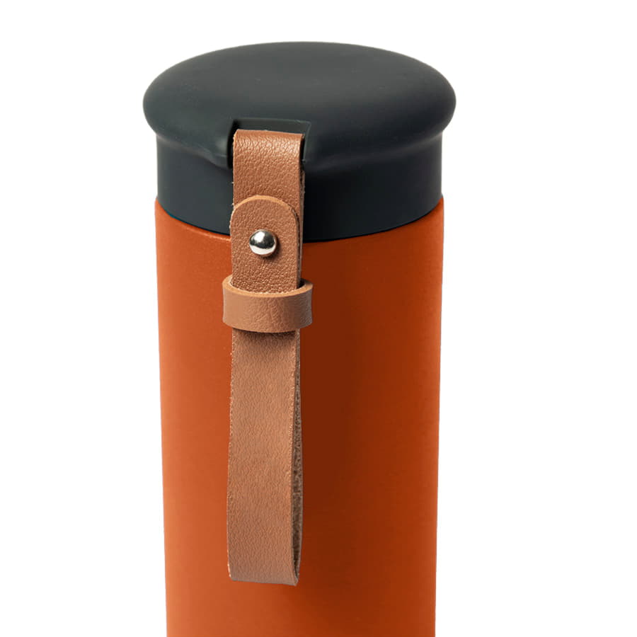 Вакуумный термос STRIPE с двойными стальными стенкамиСтильный матовый корпус термоса из нержавеющей стали (марка 304)Удобный ремешок из искусственной кожи, подходит для персонализацииГерметичная крышка с покрытием soft-touch не даст напитку пролитьсяСохраняет температуру жидкости до 12 часов в зависимости от температуры окружающей среды.Цвет близкий к Pantone 021 CИндивидуальная упаковка из крафтового картона -