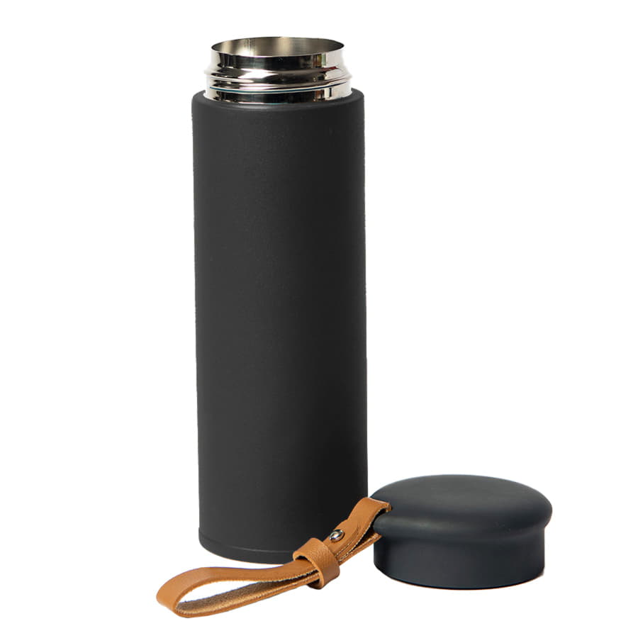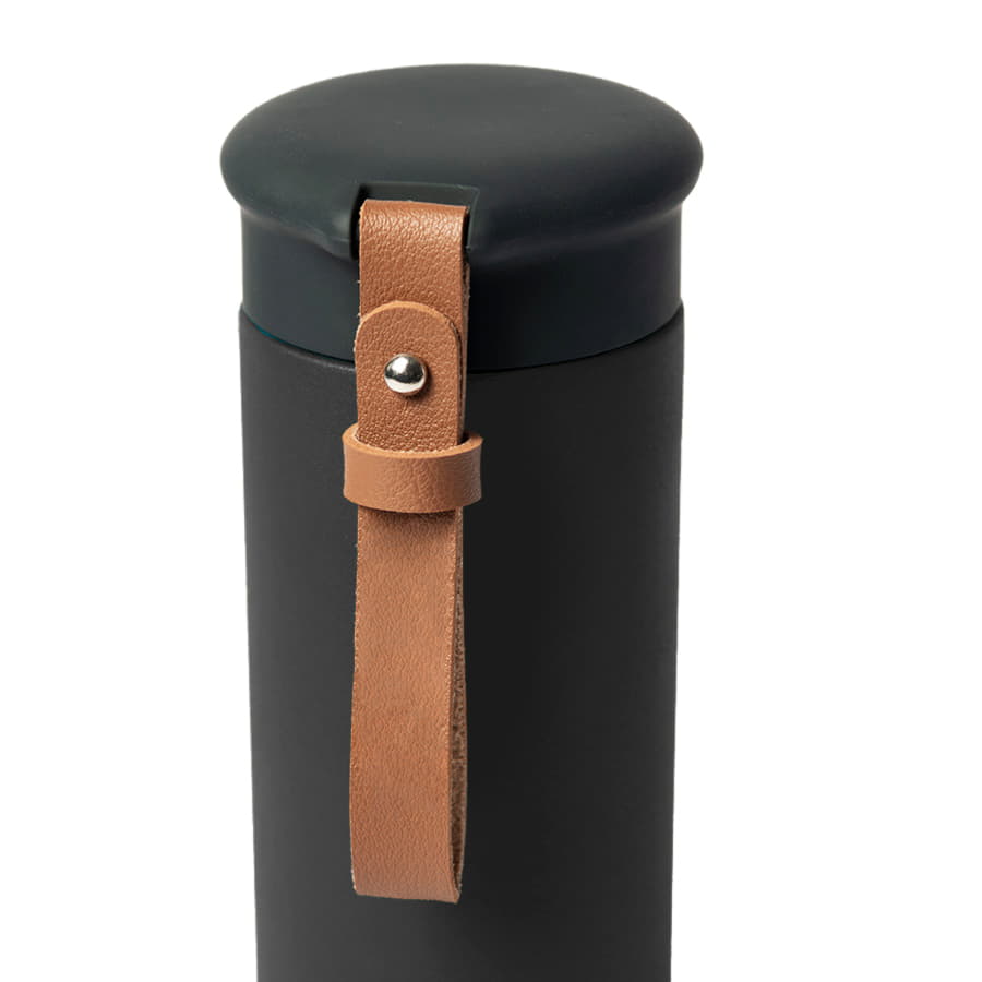 Вакуумный термос STRIPE с двойными стальными стенкамиСтильный матовый корпус термоса из нержавеющей стали (марка 304)Удобный ремешок из искусственной кожи, подходит для персонализацииГерметичная крышка с покрытием soft-touch не даст напитку пролитьсяСохраняет температуру жидкости до 12 часов в зависимости от температуры окружающей среды.Индивидуальная упаковка из крафтового картона -