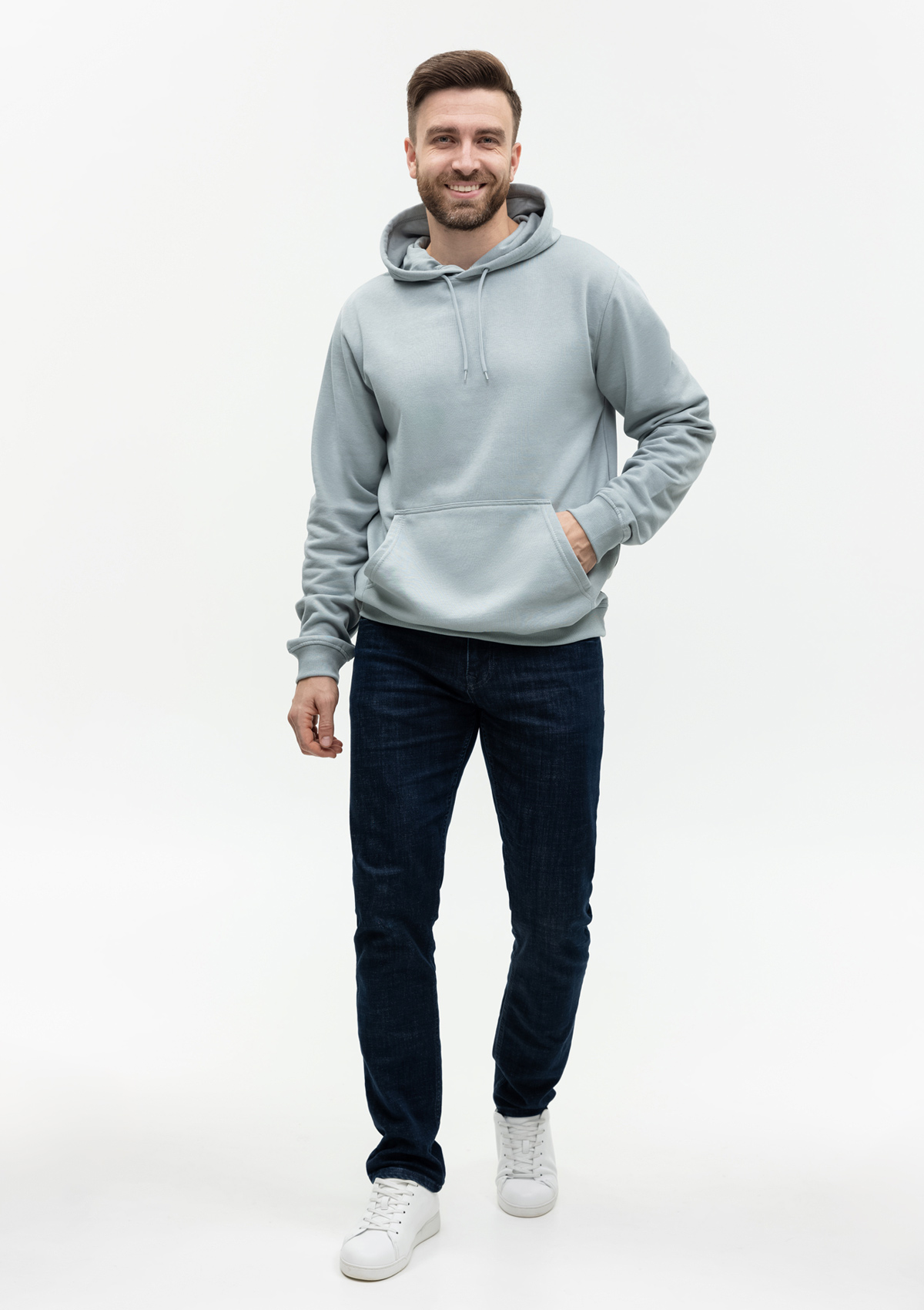 Толстовка унисекс прямого силуэта с капюшоном, втачным рукавом и карманом-кенгуру. Капюшон дополнен шнурком для регулирования прилегания, манжет и низ изделия оформлены широкой эластичной резинкой. Возможно несколько вариантов исполнения толстовки.