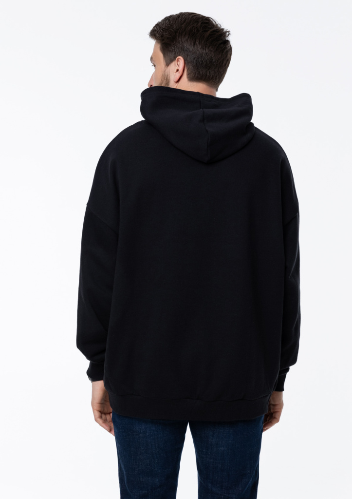 Размер мужского худи: XL/52. Параметры модели: рост 190 см.; обхват груди 108 см.; обхват талии 87 см.; обхват бедер 104 см.
