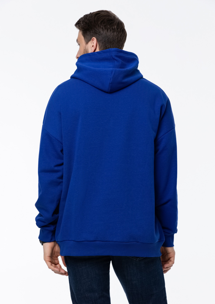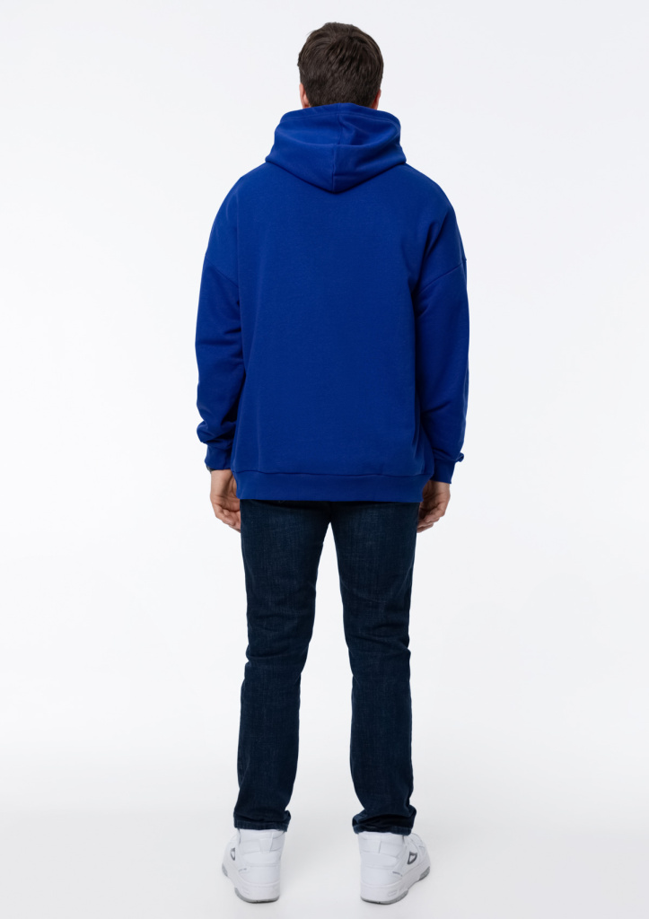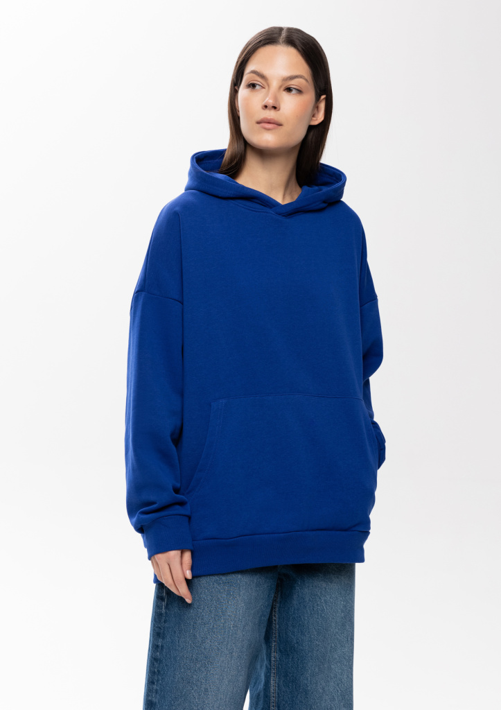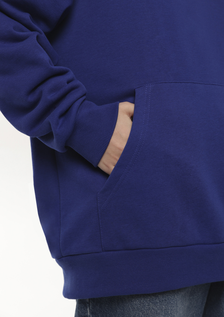 Универсальная толстовка свободного силуэта с капюшоном комфортной глубины, спущенной линией плеча и глубоким карманом-кенгуру. Манжет и низ изделия оформлены широкой эластичной резинкой.