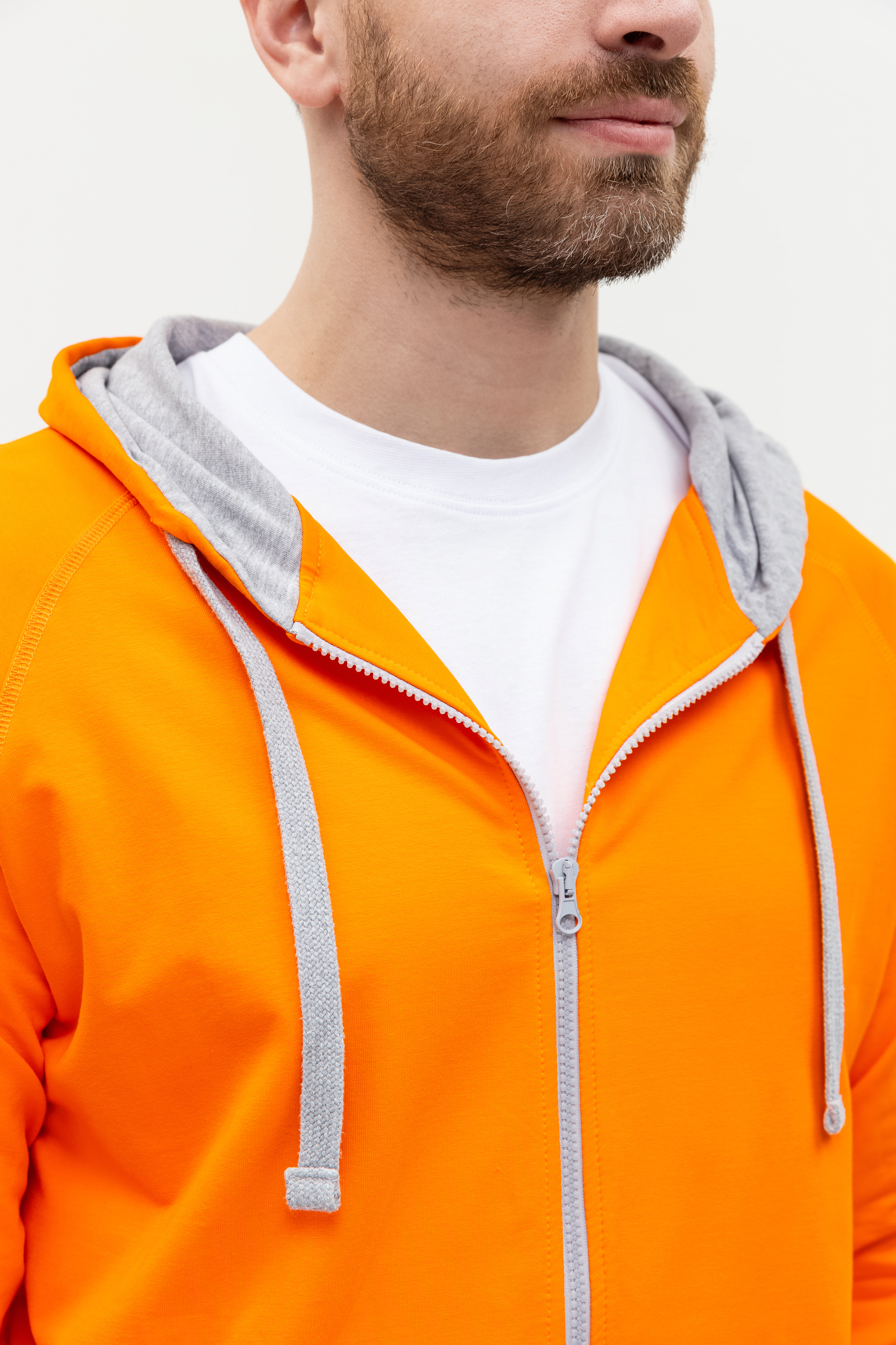 Мужская толстовка прямого силуэта с капюшоном комфортной глубины, рукавом-реглан, глубоким накладным карманом и застежкой на молнию контрастного цвета. Капюшон дополнен шнурком для регулирования прилегания, манжет и низ изделия оформлены широкой эластичной резинкой.