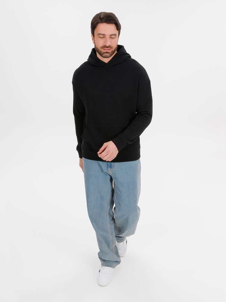 Худи унисекс со спущенным плечом и карманом-кенгуру расслабленного силуэта.- Манжеты и низ изделия выполнены из основного материала
