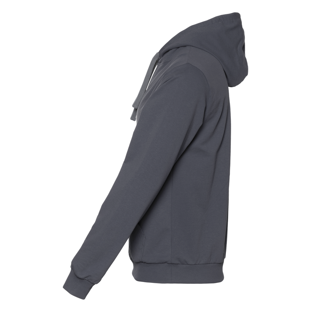 Толстовка без начеса выполнена из мягкого футера (100% хлопок), подклад – кулирная гладь (100% хлопок). Оба материала устойчивы к механическому воздействию и вытяжению, практически не поддаются пилингу.