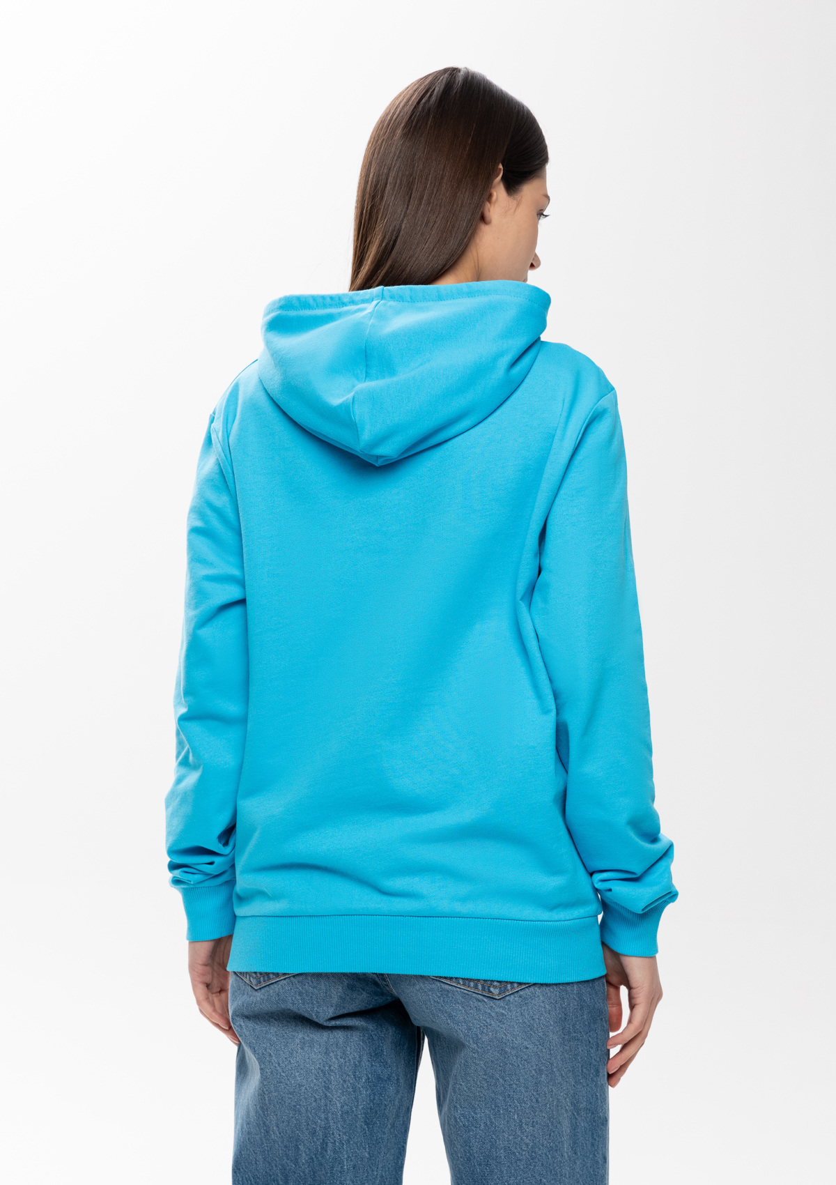 Толстовка без начеса выполнена из мягкого футера (100% хлопок), подклад – кулирная гладь (100% хлопок). Оба материала устойчивы к механическому воздействию и вытяжению, практически не поддаются пилингу.