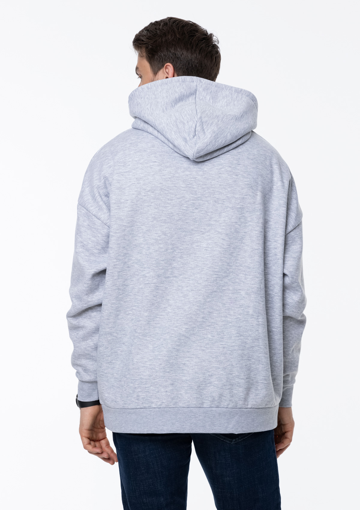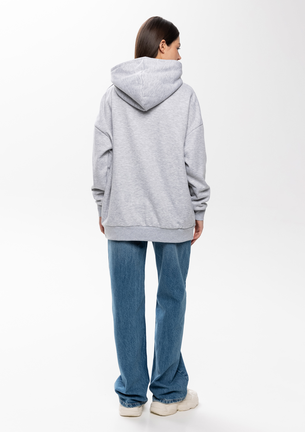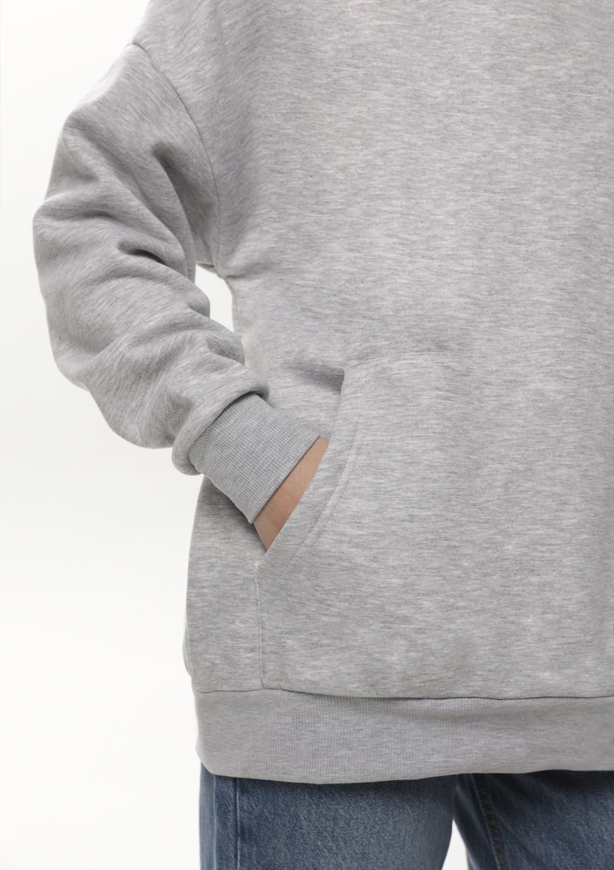 Толстовка свободного силуэта с капюшоном комфортной глубины, спущенной линией плеча и глубоким карманом-кенгуру. Манжет и низ изделия оформлены широкой эластичной резинкой в тон основному цвету.