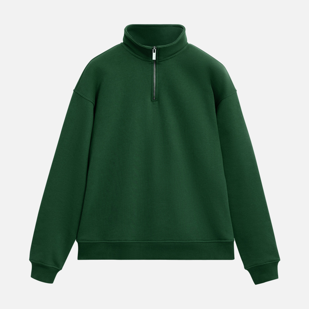 Универсальная толстовка с воротником-стойкой и заниженной линией плеча. По нижнему краю и на рукавах — эластичные резинки для комфортной и аккуратной посадки. Модель застёгивается на металлическую молнию.