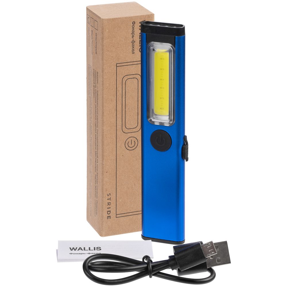 Фонарик-факел аккумуляторный Wallis с магнитом, синий