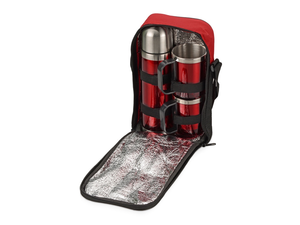 Набор состоит из термоса на 550 мл и двух кружек на 220 мл, которые складываются в удобную дорожную сумку с термоизоляцией. Термос поможет сохранить ваши напитки теплыми в течение 4 часов. Набор придется весьма кстати во время длительных прогулок, походов и даже отдыха на даче. -