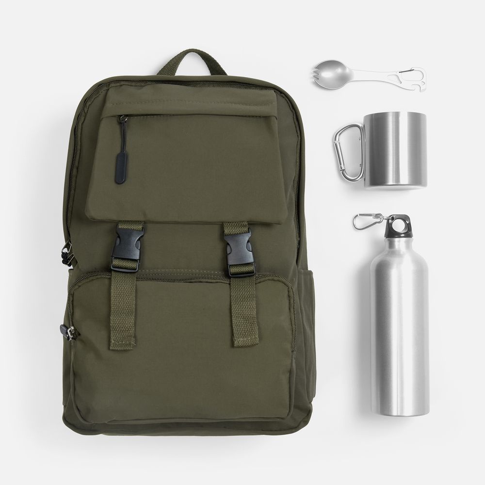 Походный набор TrekKing создан для тех, кто не привык сидеть на месте, ценит активный отдых на природе и новые впечатления. В городском рюкзаке с легким outdoor-акцентом здесь собрано самое главное, что всегда поддержит в пути, на пикнике или на прогулке — и выдержано в классическом походном стиле.
