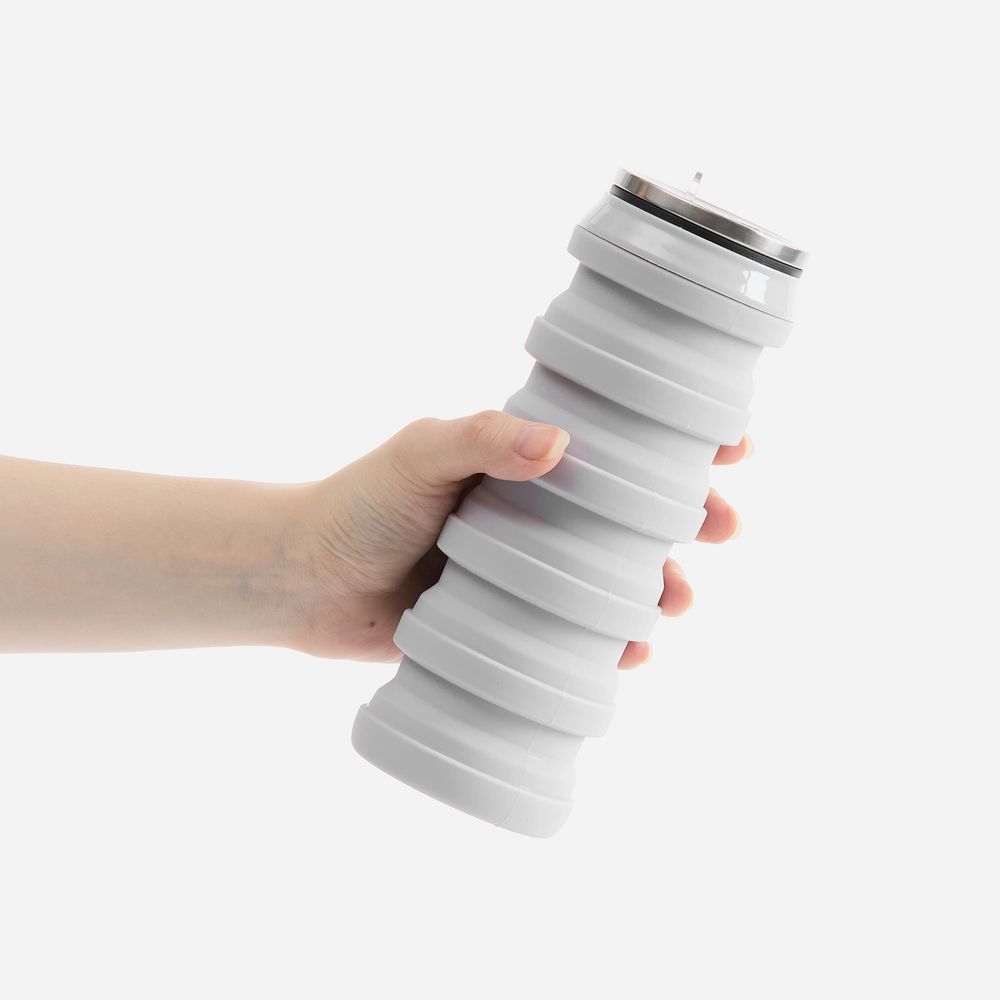 Складная бутылка для воды Folla привлекает внимание своим необычным внешним видом и функциональностью. По форме она больше всего напоминает классическую алюминиевую банку для напитков. При этом ее высоту можно легко увеличить с 10 до 20 см. В сложенном виде бутылка поместится даже в небольшую сумочку, а полный полезный объем составляет целых 480 мл.