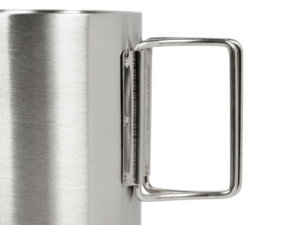 Необычная конструкция ручки делает кружку компактной и позволяет экономить место в рюкзаке или сумке — ручка оборачивается вокруг корпуса кружки.