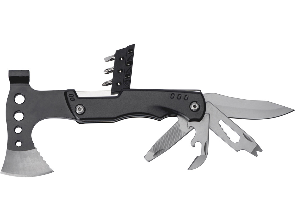 Топор-мультитул 7-в-1 Stalk бренда roq выполнен из нержавеющей стали 420 марки. Обладает значительным весом в 404 грамма для удобства работы топором или молотком. Товар поставляется в брендированном нейлоновом чехле с защитной накладкой на острие топора, что делает его транспортировку абсолютно безопасной.
