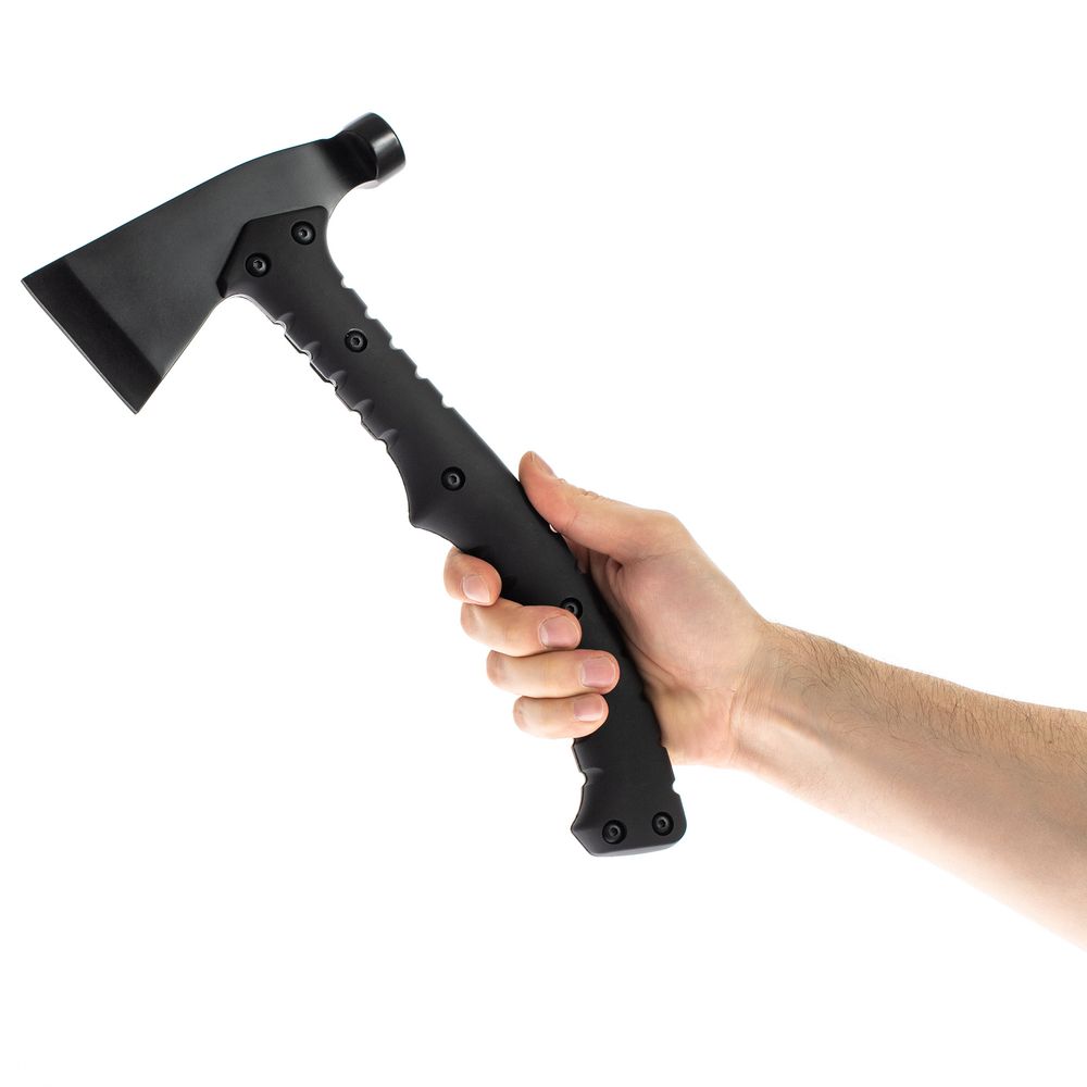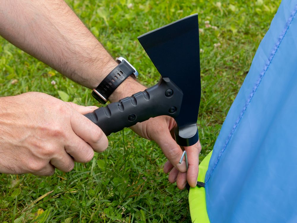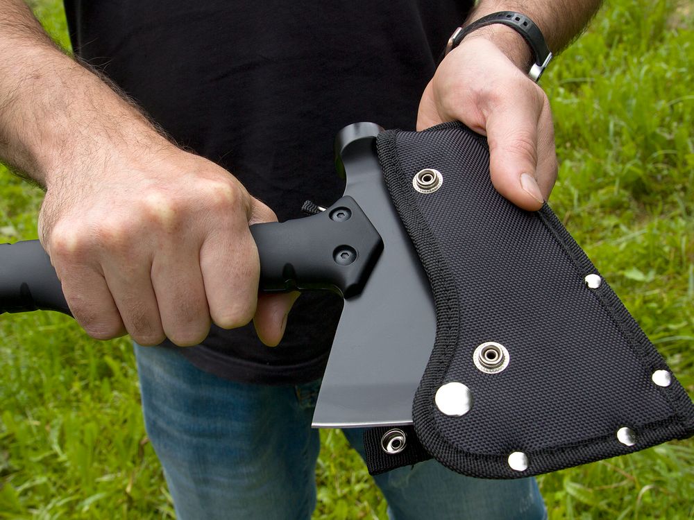 Туристический топор с молотком на обухе поможет нарубить дрова, расчистить место для стоянки, подготовить кострище и поставить лагерь.В комплект входит чехол.